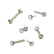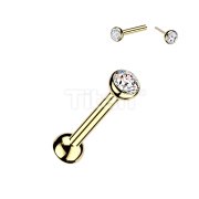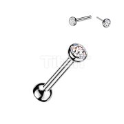 Titanium Threadless Push In Cartilage Barbell With Bezel Set CZ Ends & One Fixed Ball