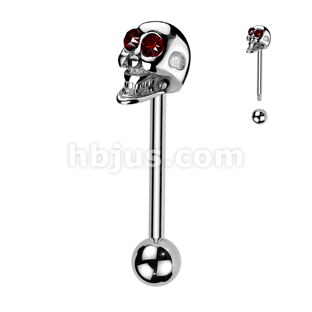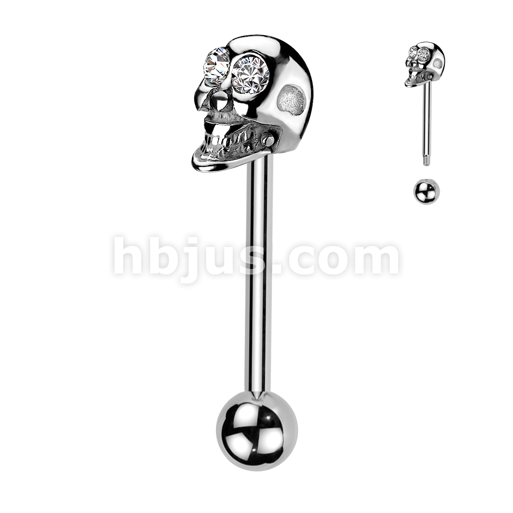 Skull Barbell Gemmed Eye 316L Surgical Steel