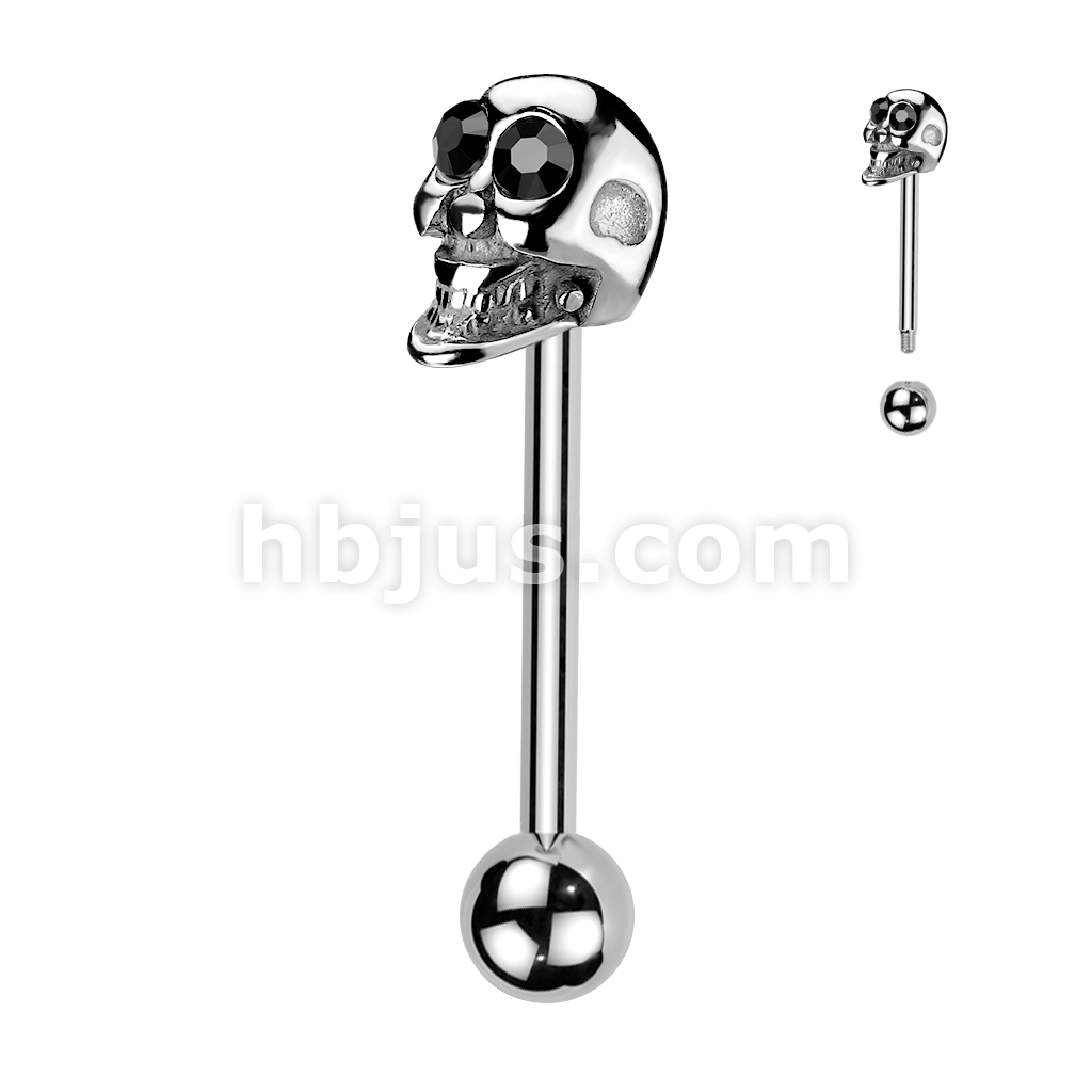Steel Skull Gemmed Eye Barbell with 5mm Ball.