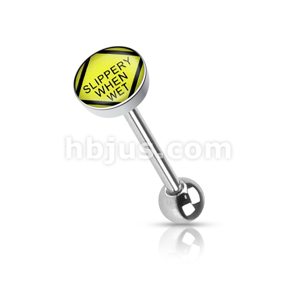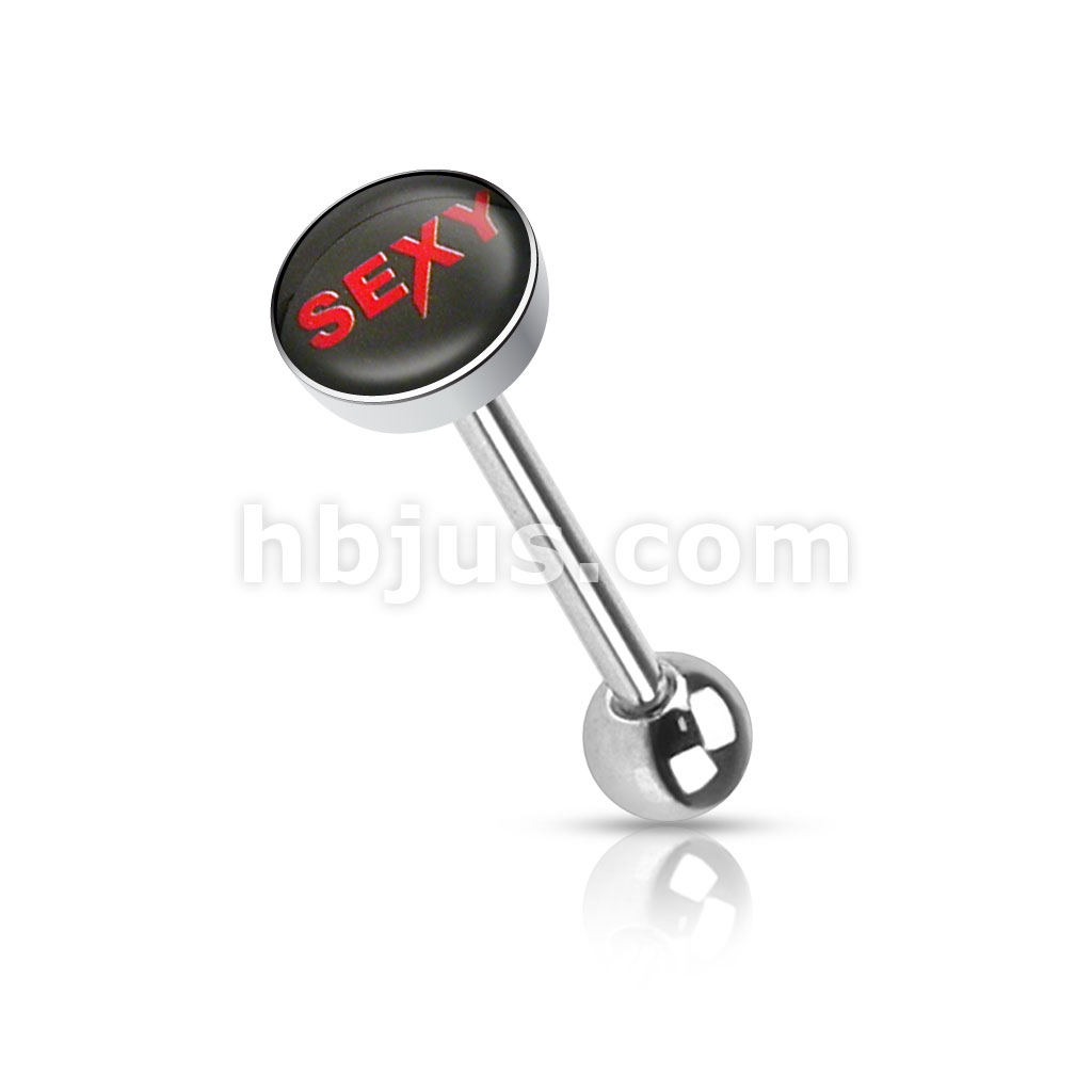 Clear Epoxy Covered Words Inlaid Top 316L Surgical Steel Barbell Tongue Rings