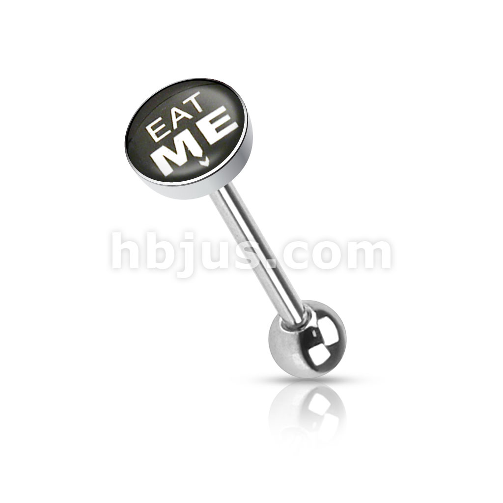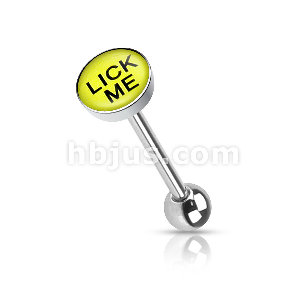 Clear Epoxy Covered Bad Words Inlaid Top 316L Surgical Steel Barbell Tongue Rings