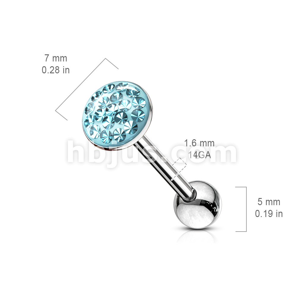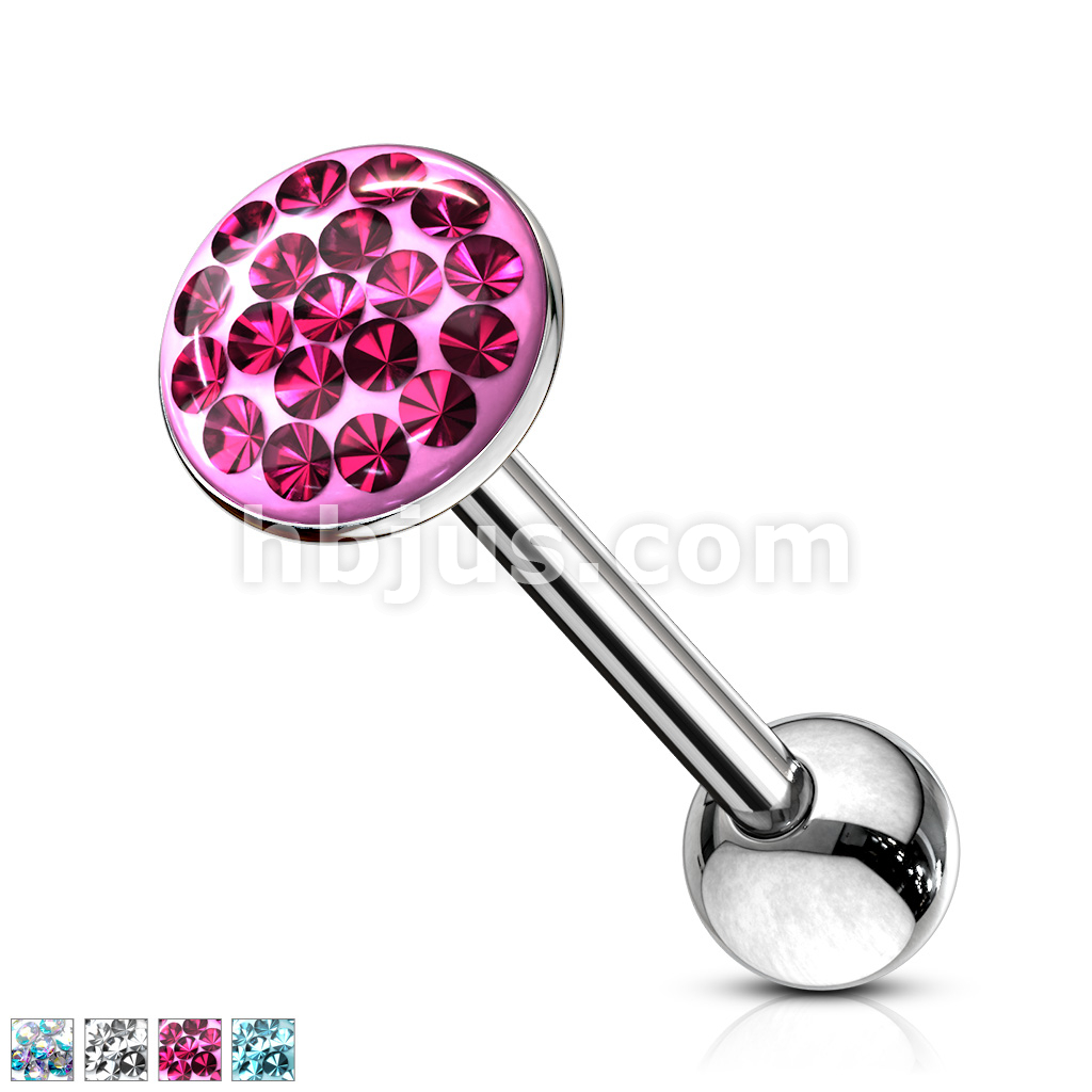 Round Paved-Gem 316L Surgical Steel Barbell . Clear Epoxy surface to avoid any scratches