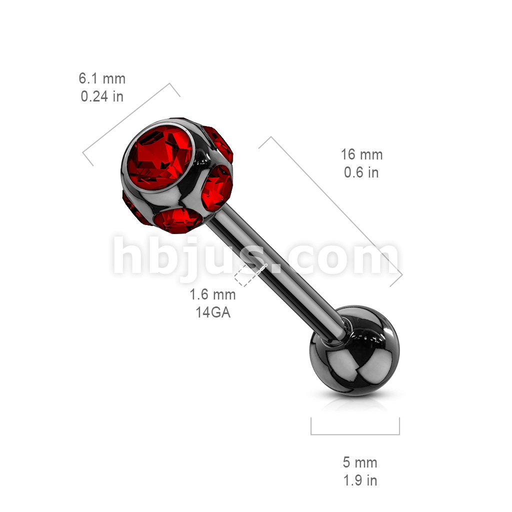 Multiple Gem Set Ball Top IP Over 316L Surgical Steel Barbells