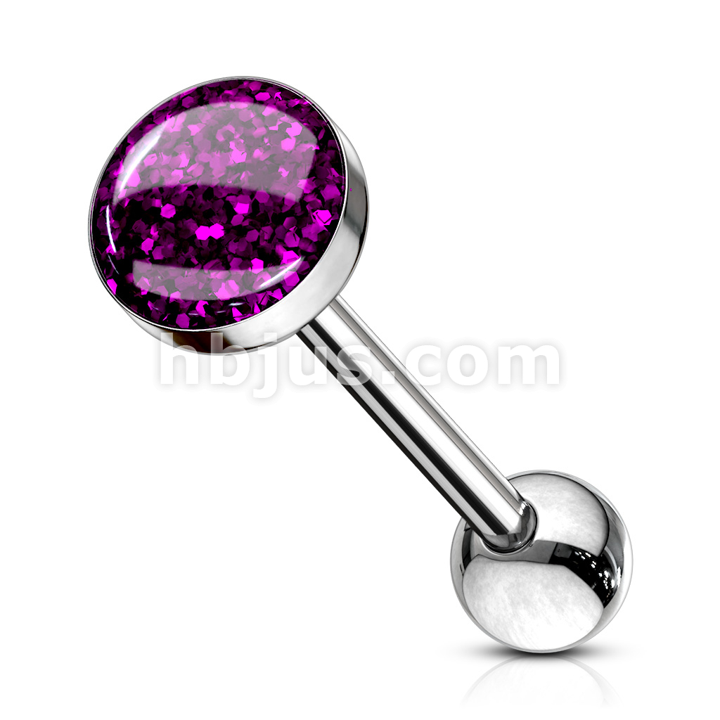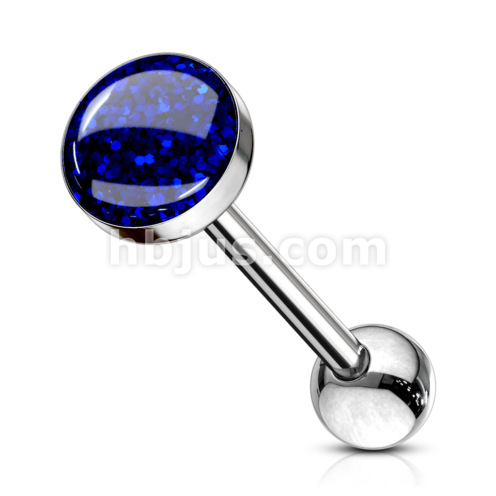 Phosphor Glitter Epoxy Dome Top Barbell 316L Surgical Steel