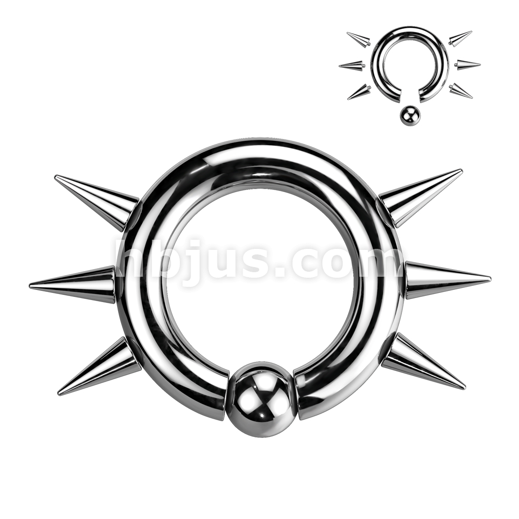 Easy Snap-In Captive Bead Ring w/ 6 Internally Threaded Spikes 316L Surgical Steel