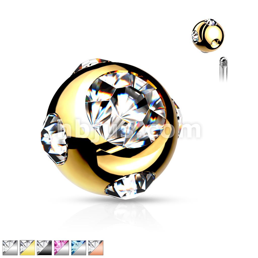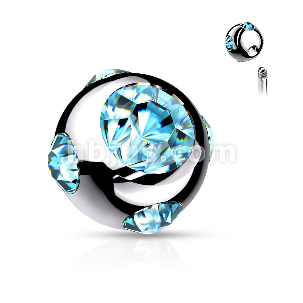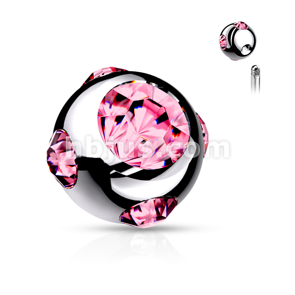 10 Pc Pack 316L Surgical Steel Externally Threaded 5 Gem Set Ball Pack