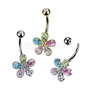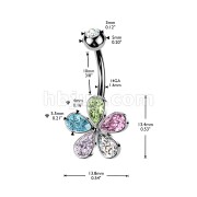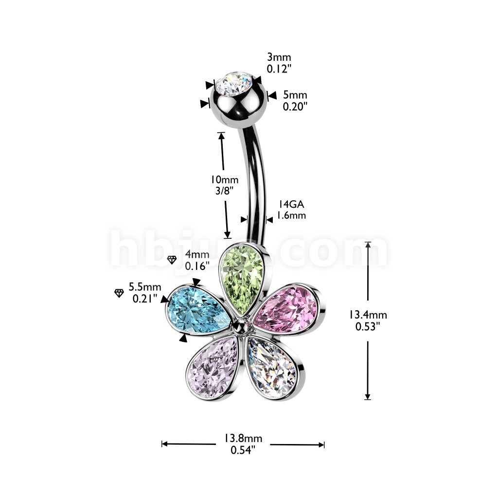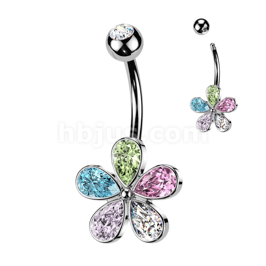 316L Belly Ring With Multi Color Teardrop CZ Flower