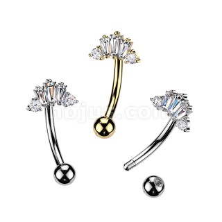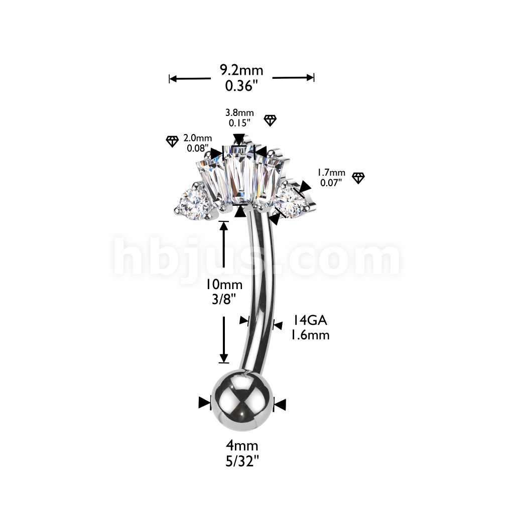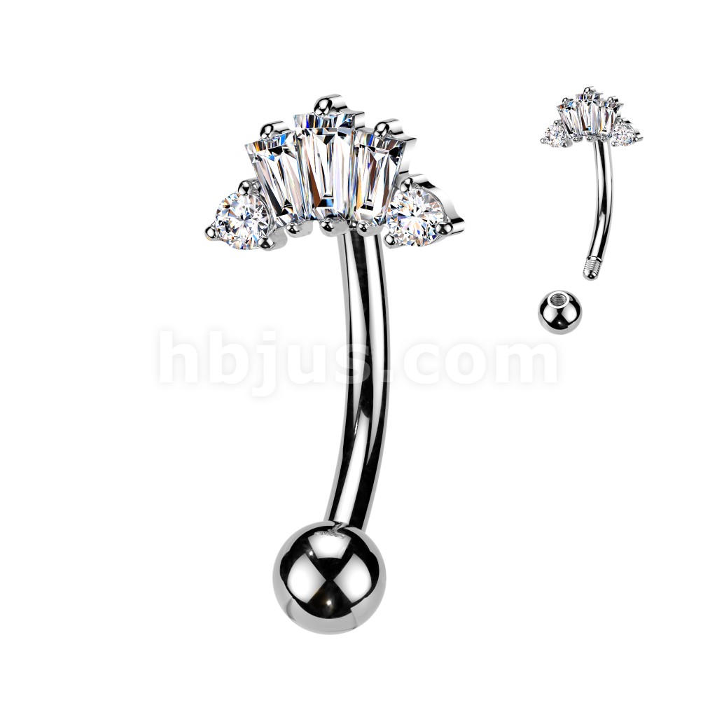 316L Externally Threaded Reverse Belly Ring With Baguette & Round CZ Crown Top
