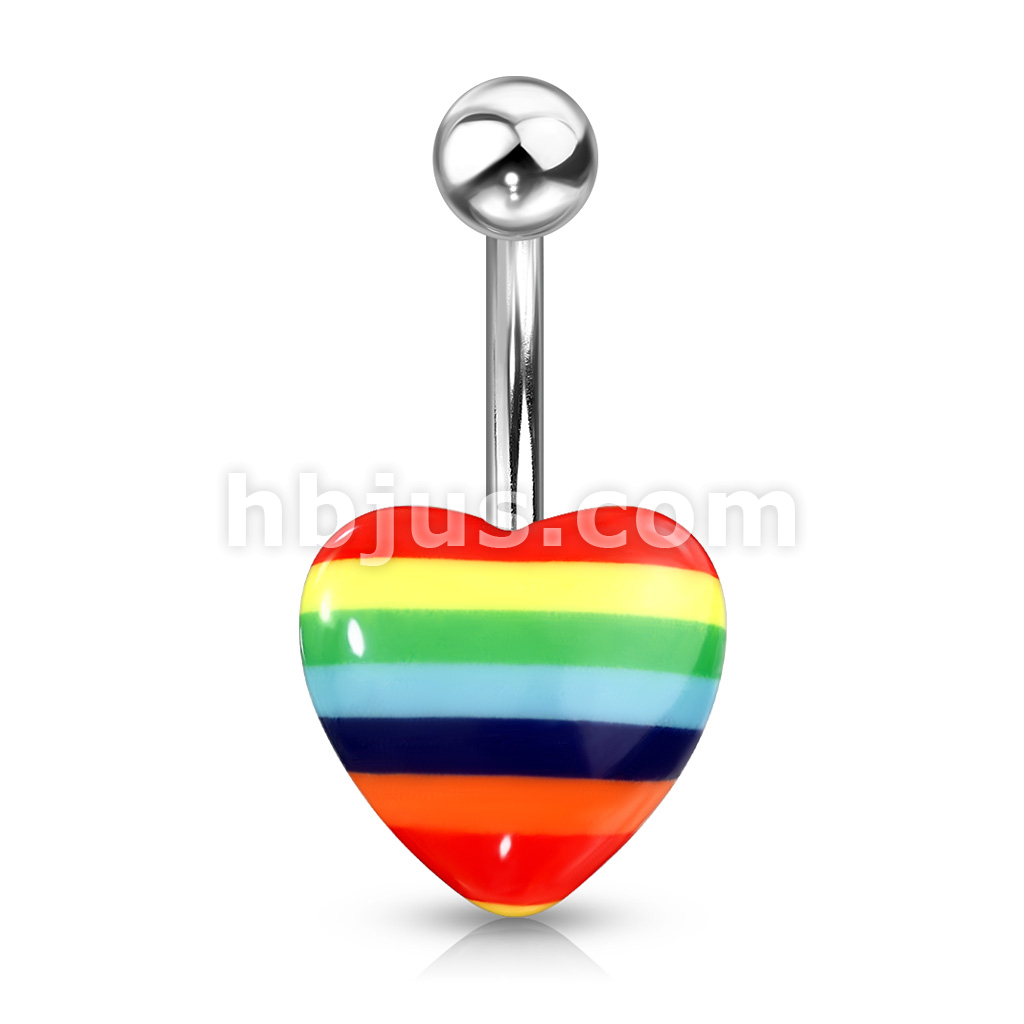 Rainbow Acrylic Heart Navel Ring 316L Surgical Steel