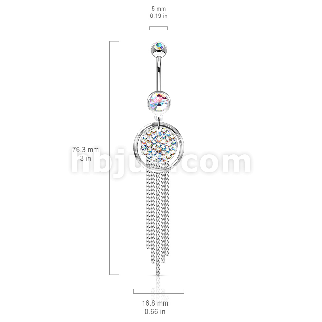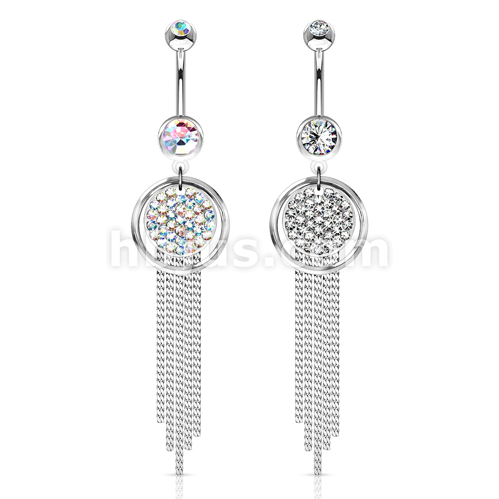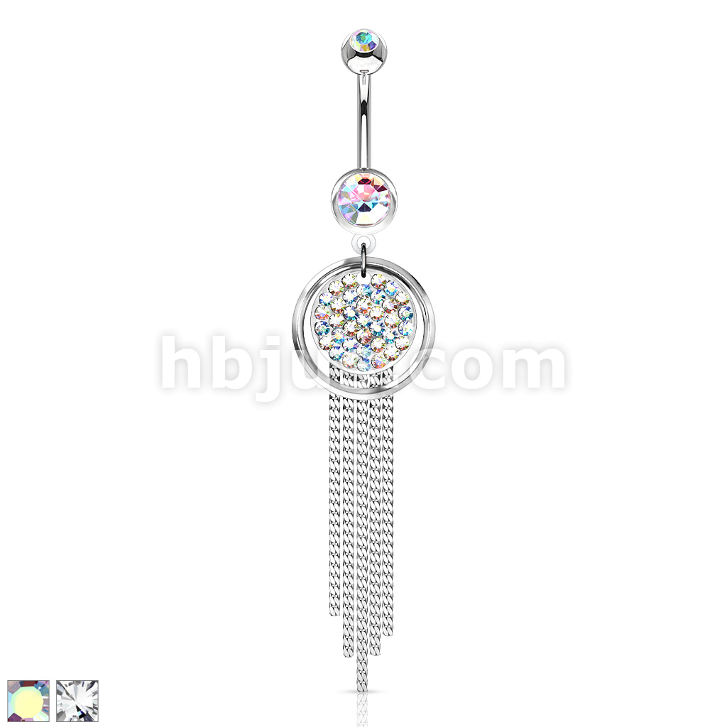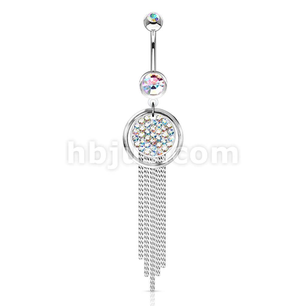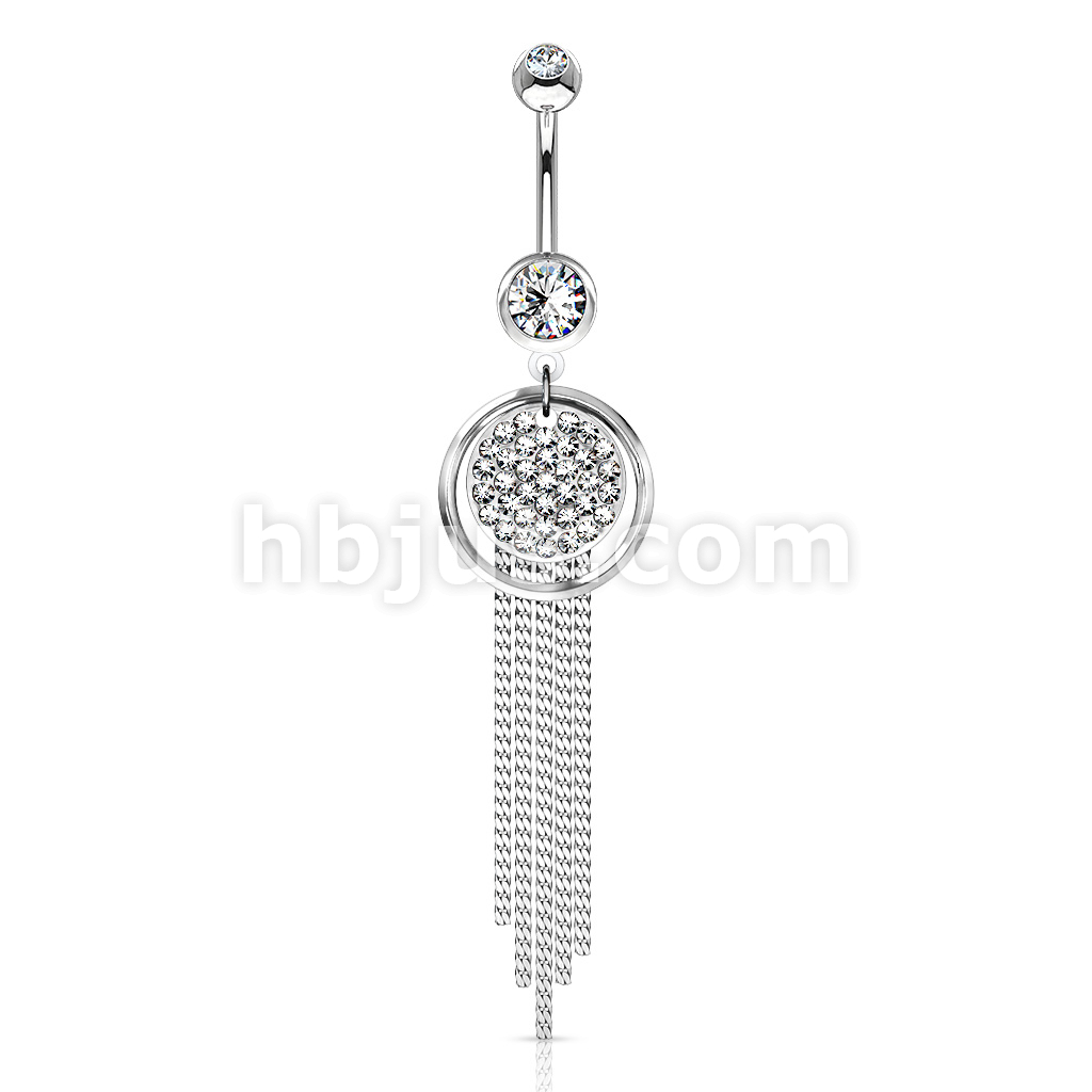 316L Surgical Steel Plate Paved Round With Chandelier Dangle Belly Button Ring