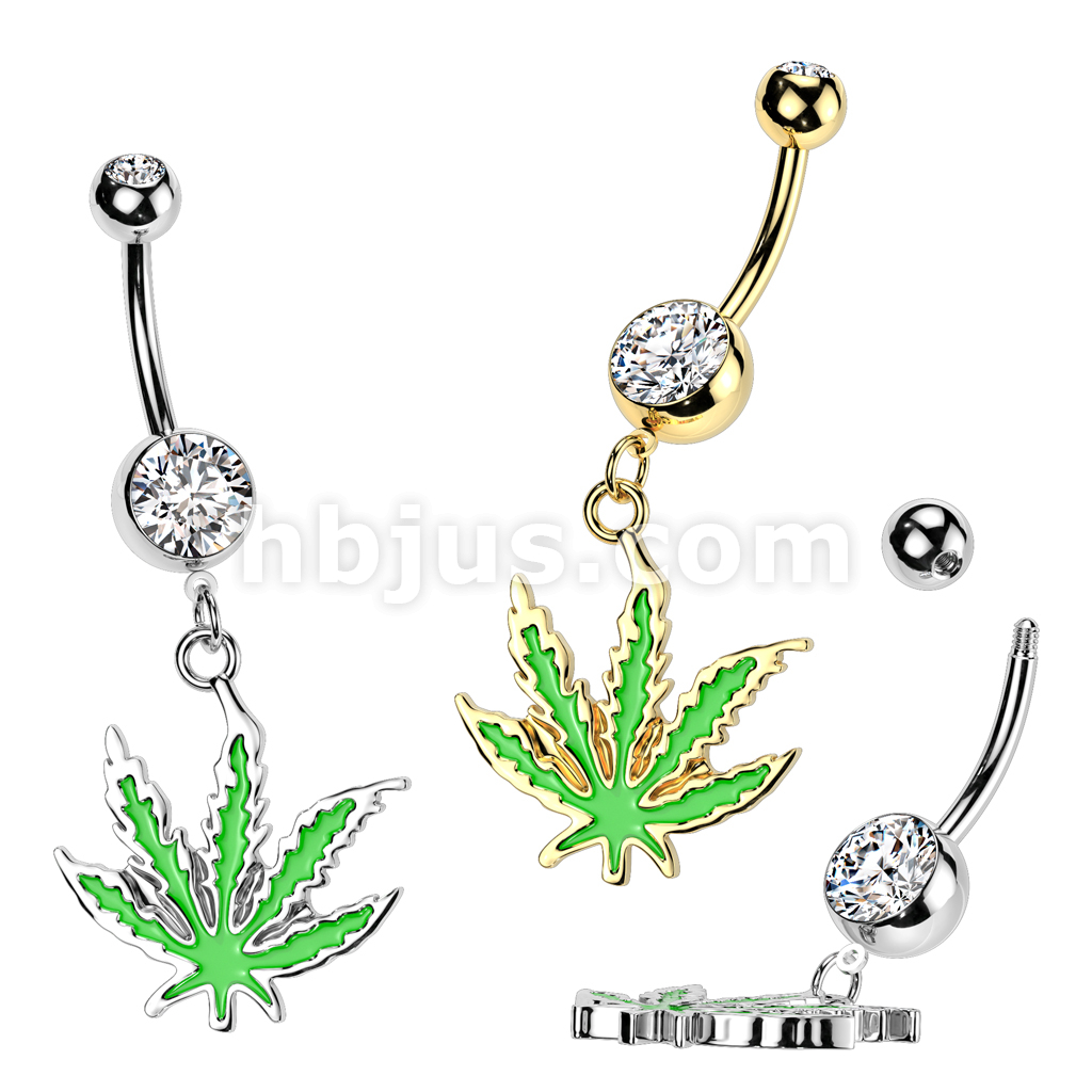 316L Surgical Steel Pot Leaf Dangle Belly Button Ring