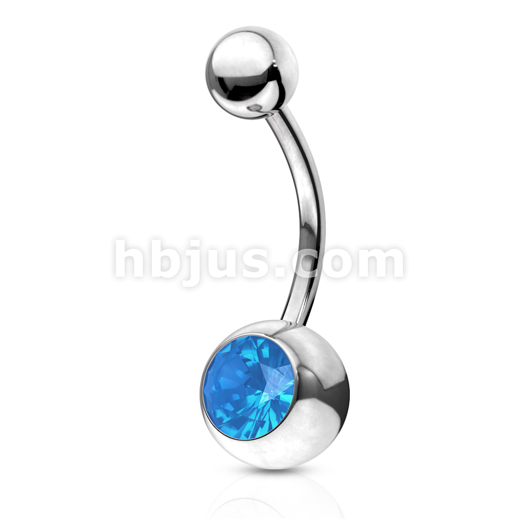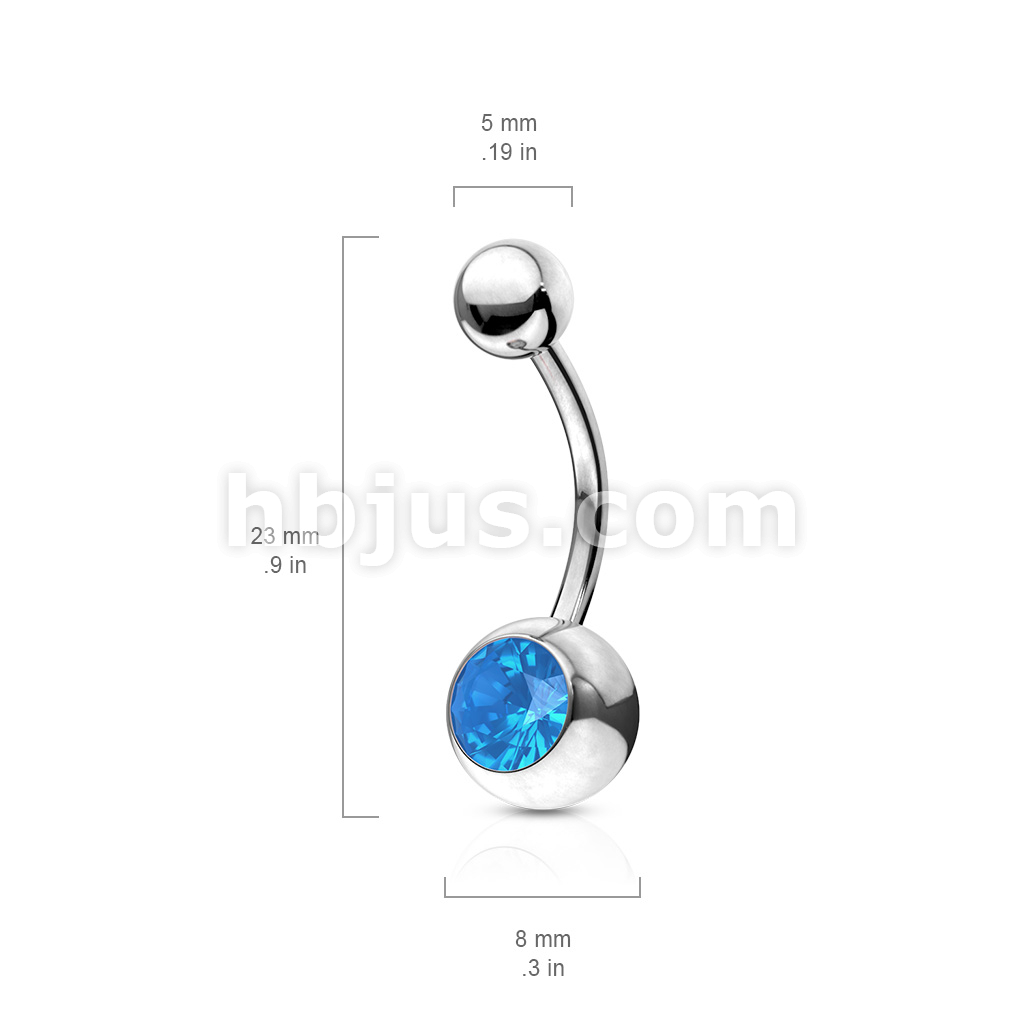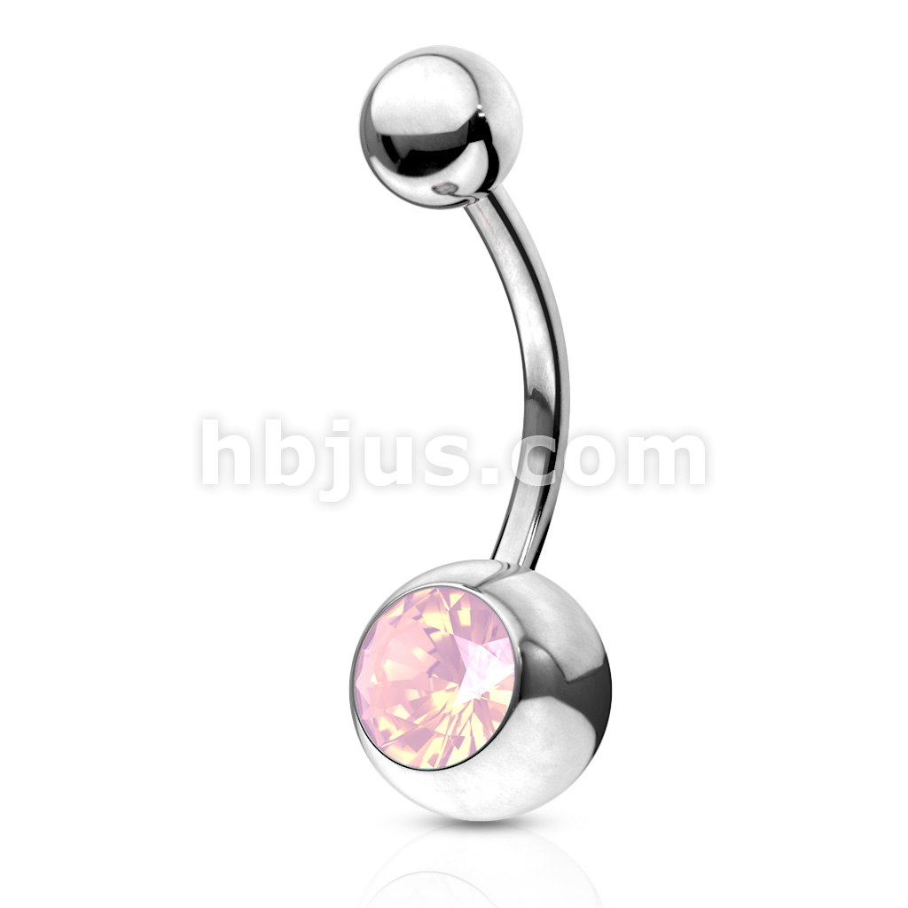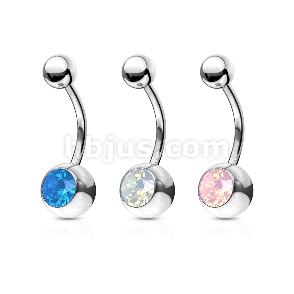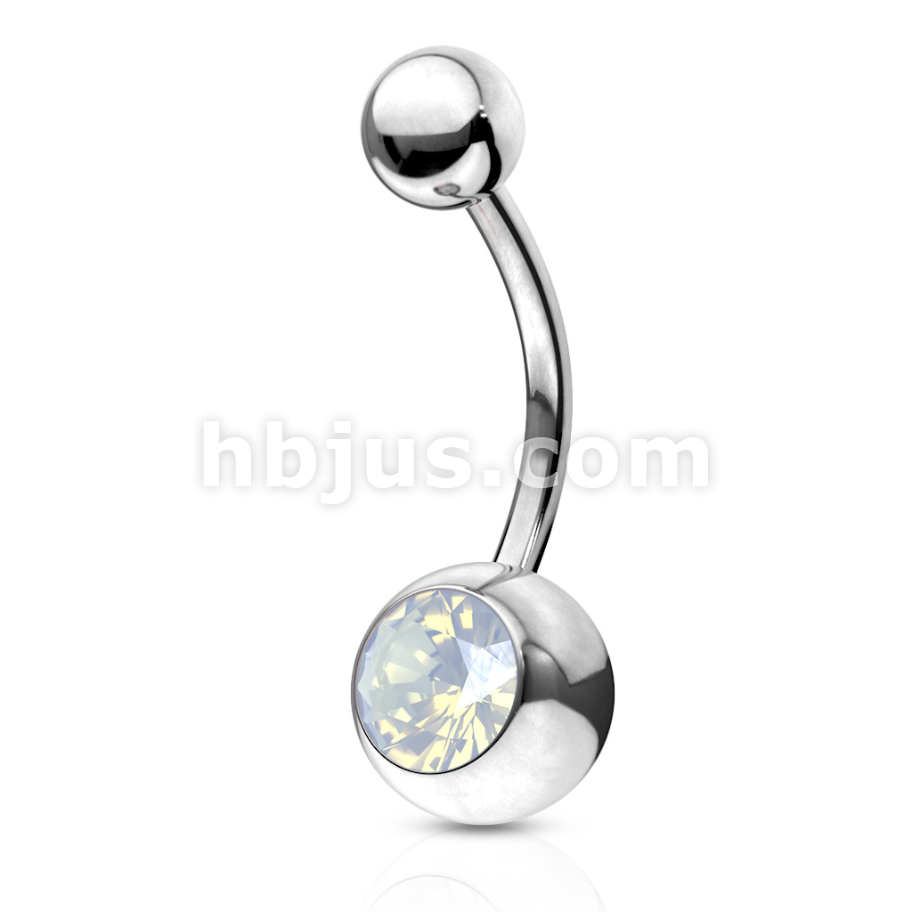 Crystal Opal Stone Bezel Set Navel Ring 316L Surgical Steel