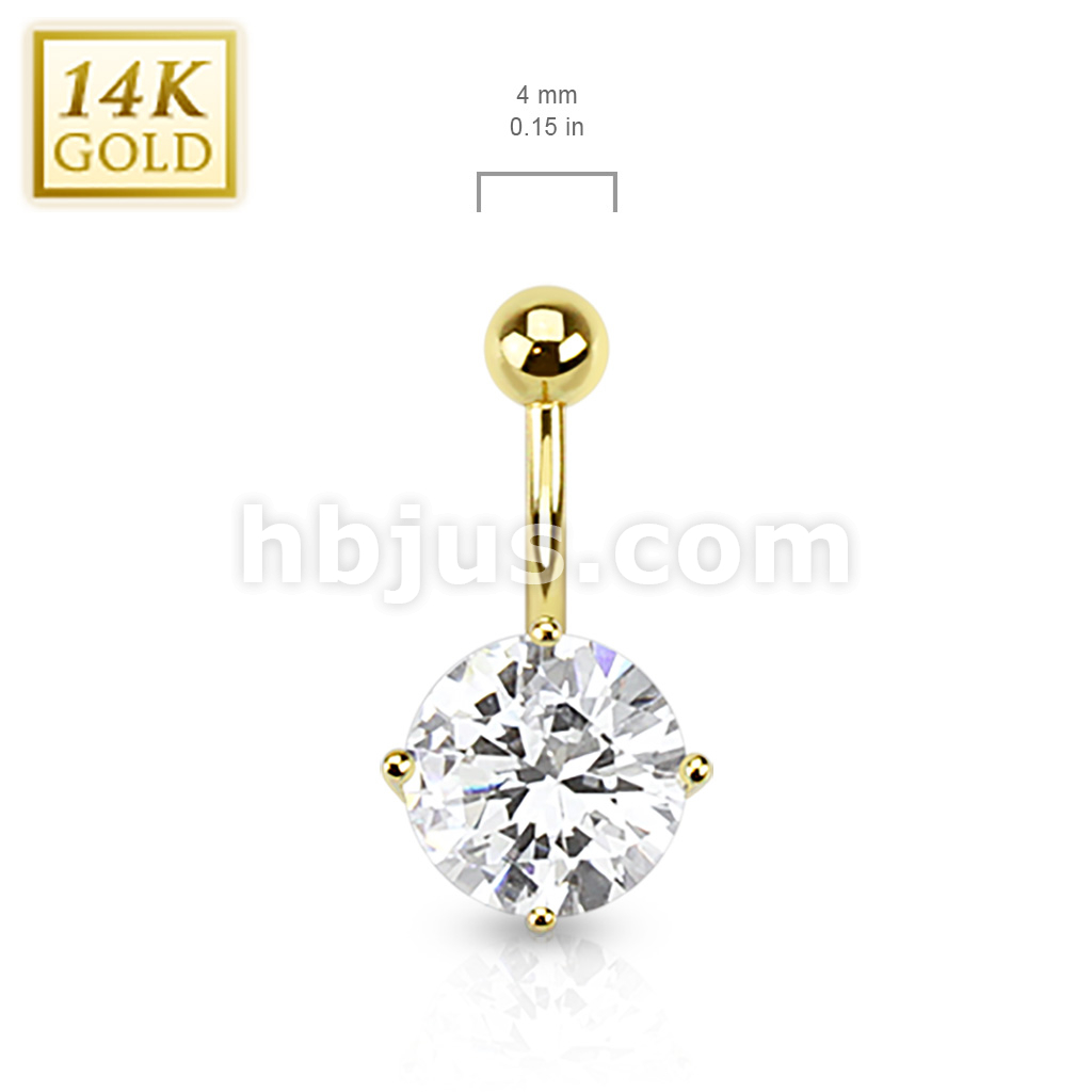 14K Gold Cubic Zirconia Round Prong Set Navel Belly Button Ring