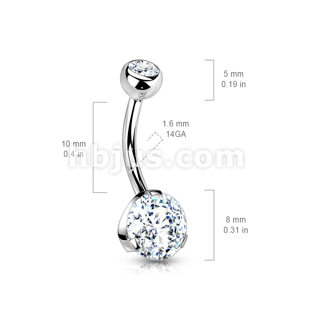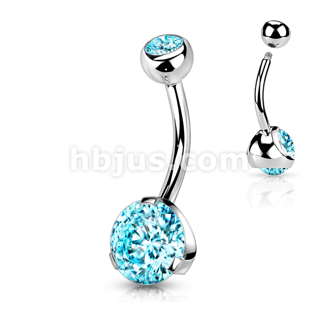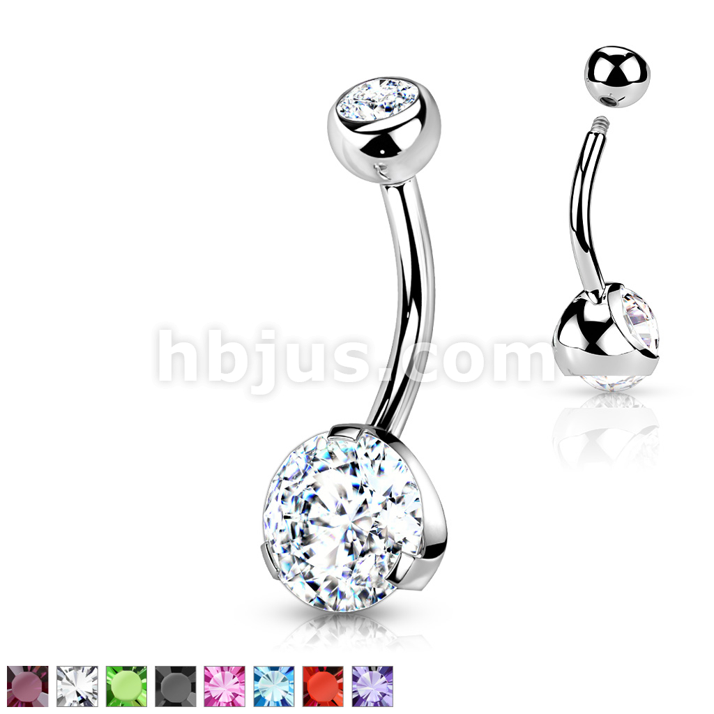 Prong Set CZ 316L Surgical Steel Navel Ring