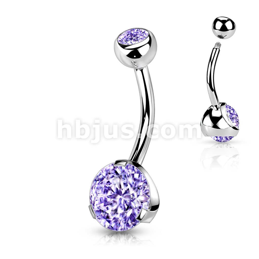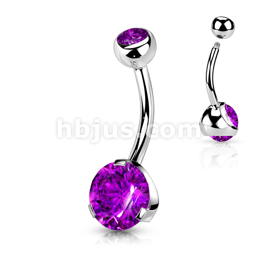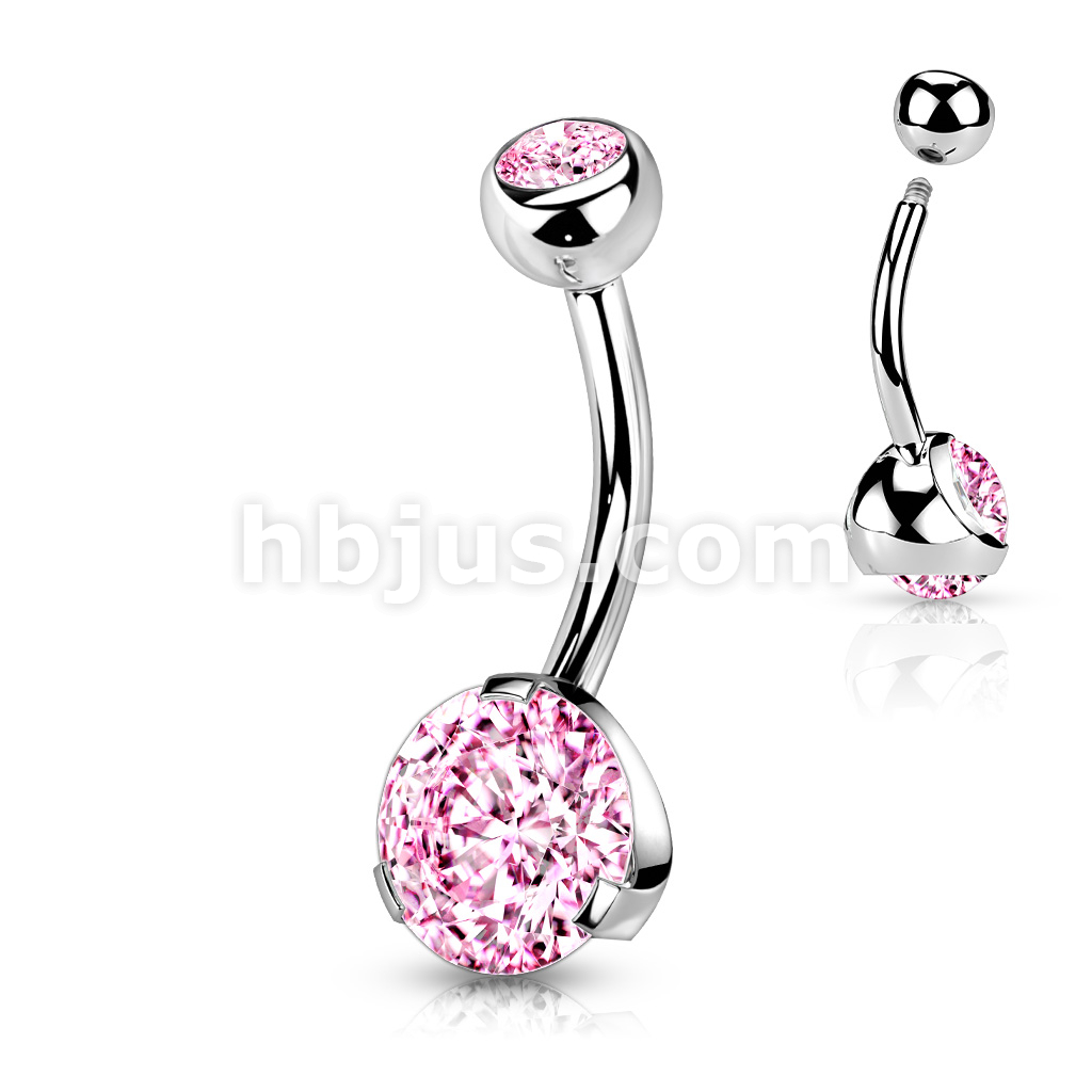 Prong Set CZ 316L Surgical Steel Navel Ring