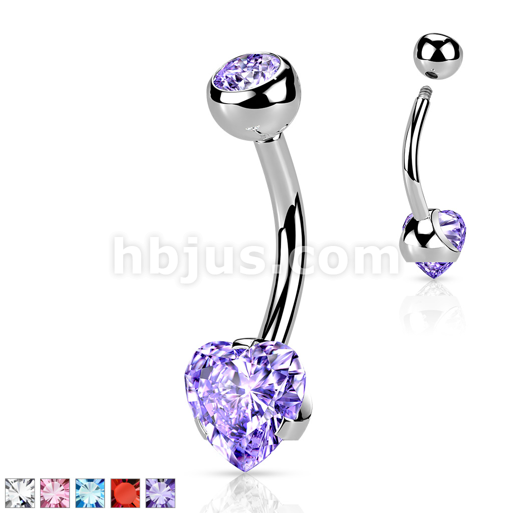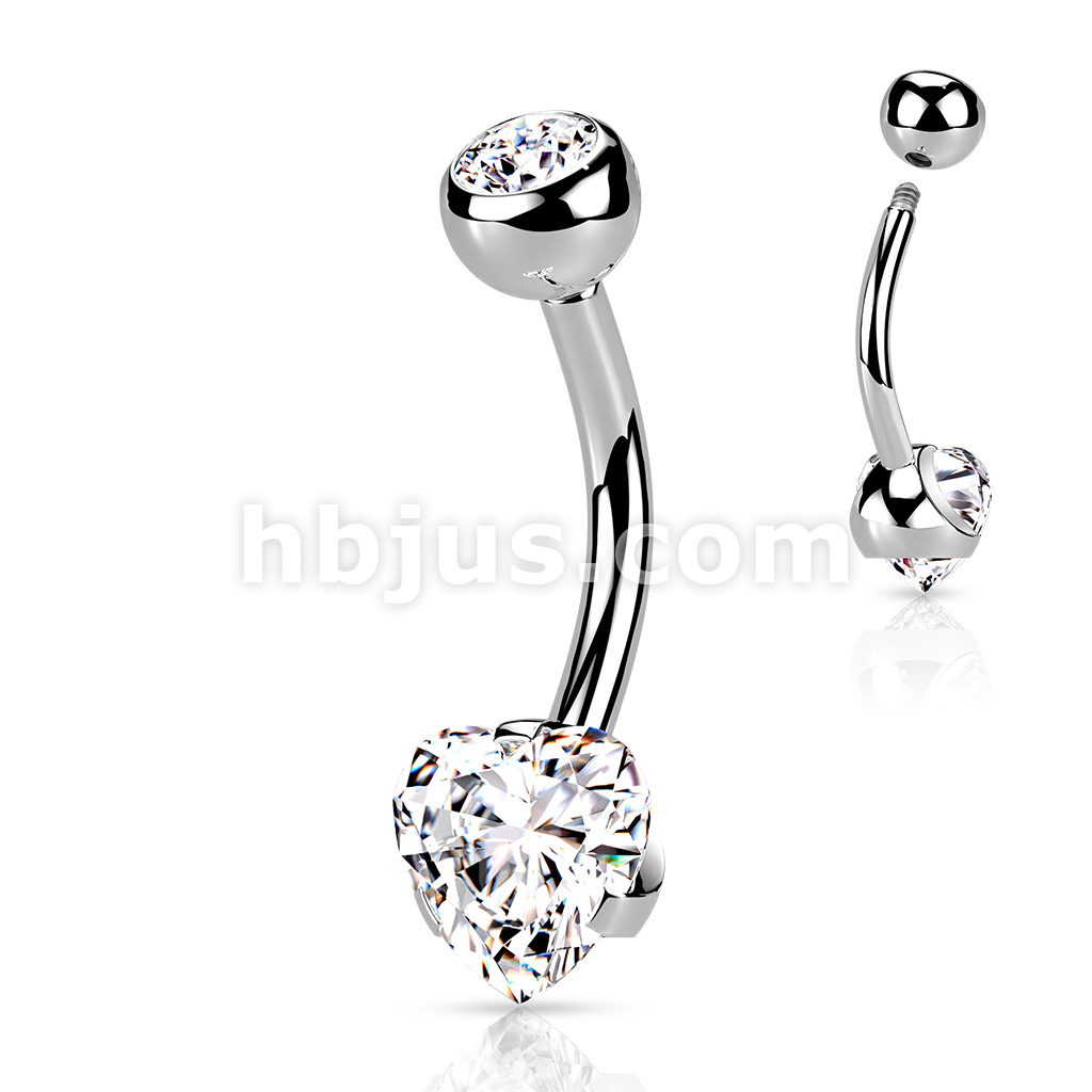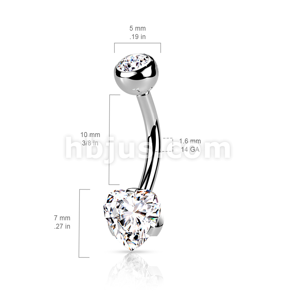 Heart CZ Prong Set Navel Ring 100% 316L Surgical Steel