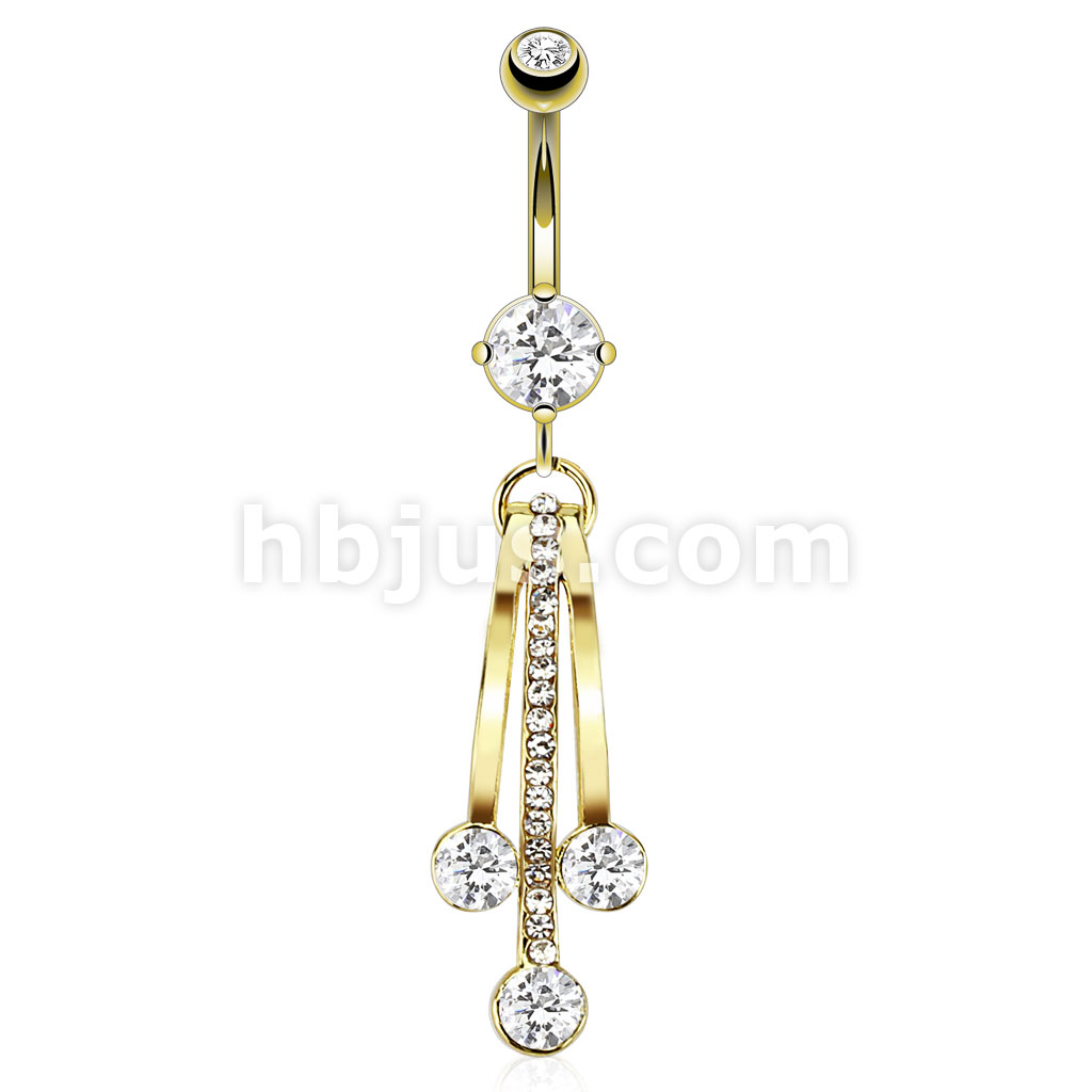 316L Surgical Steel Petite Multi Paved Waves of CZ Droplets Belly Button Ring