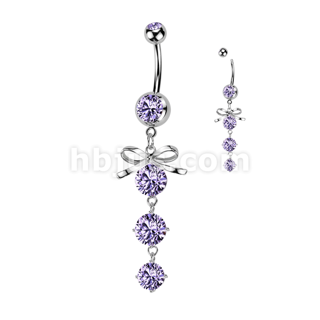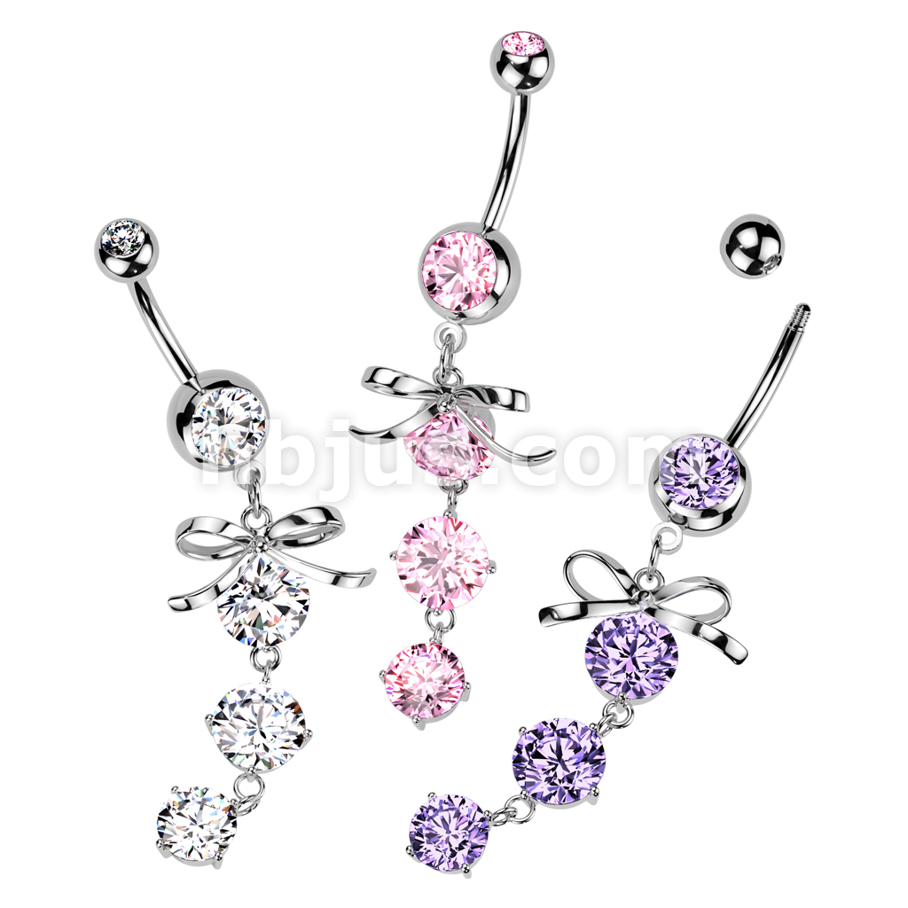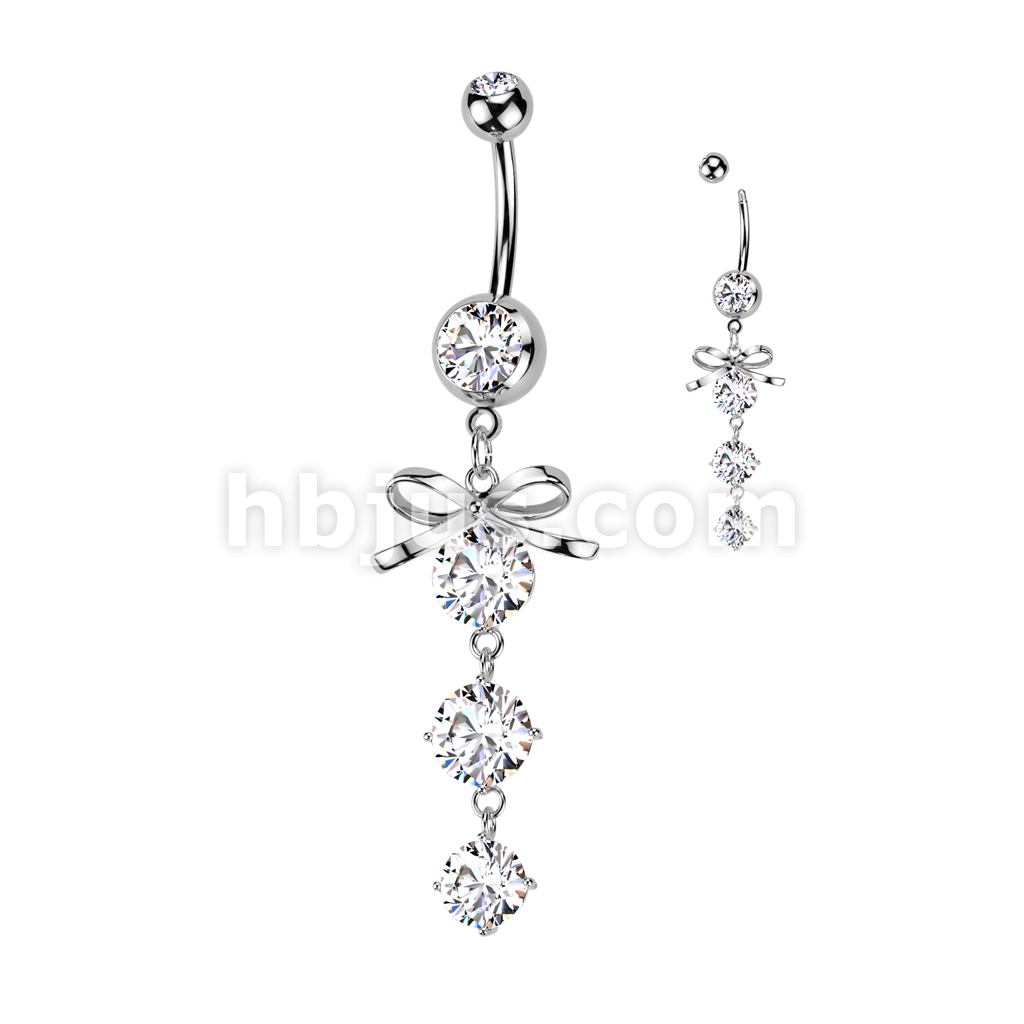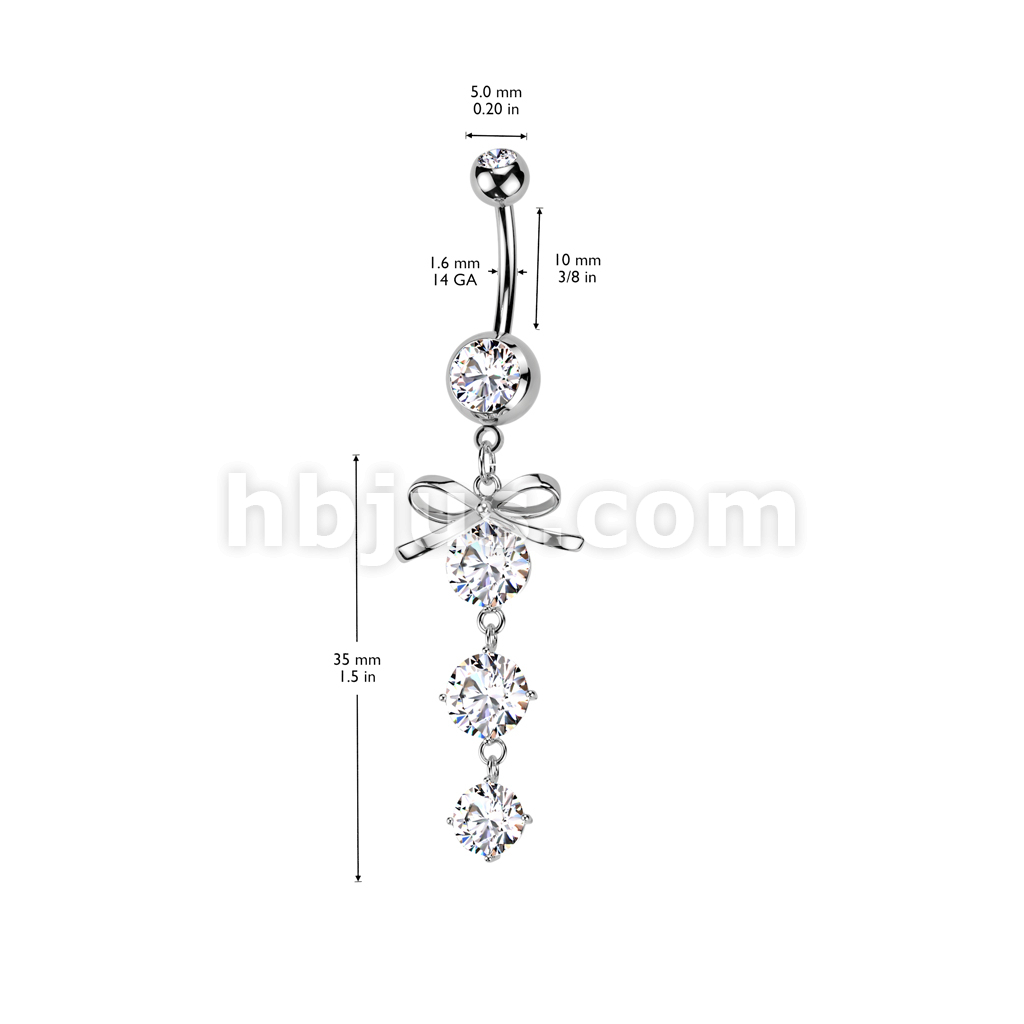 316L Surgical Steel Ribbon With Cascading Droplets of Orb Gems Belly Button Ring
