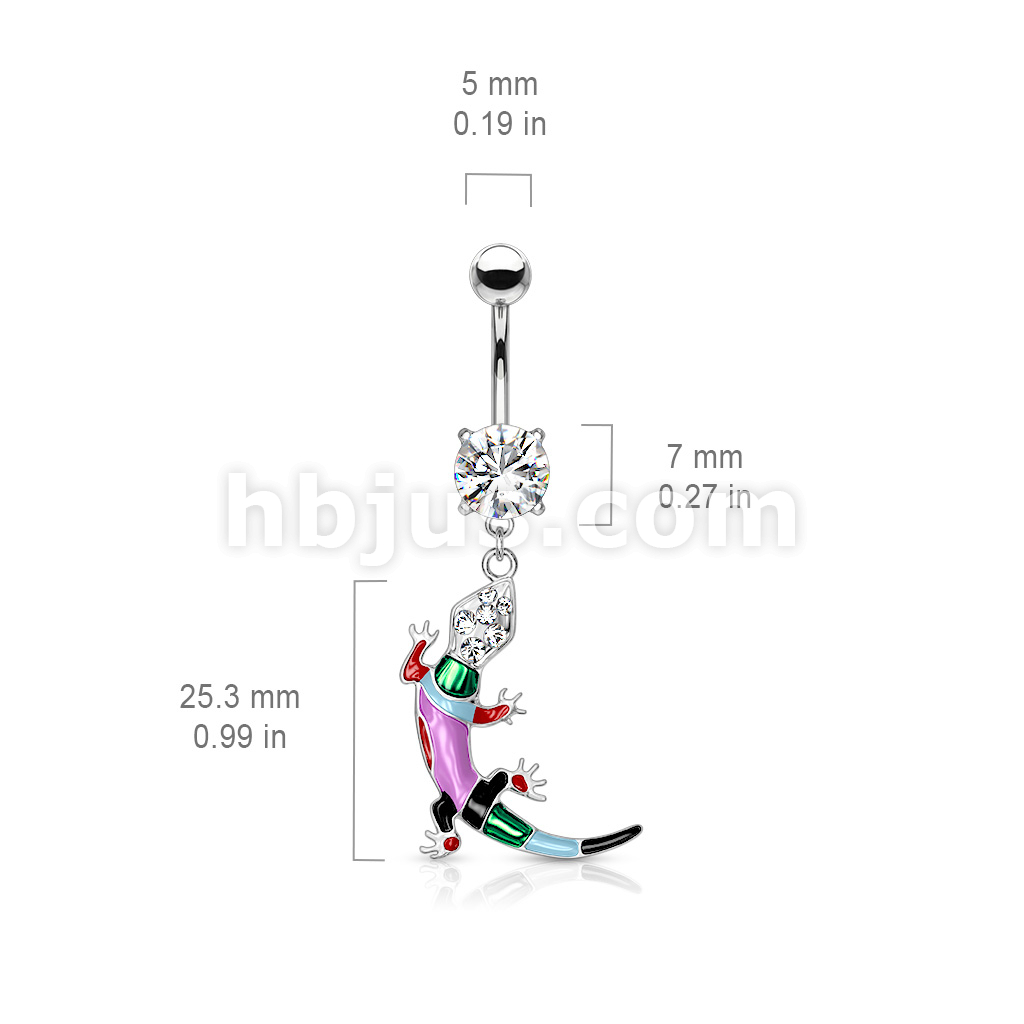 316L Surgical Steel Lizard Multi Colored Epoxy With Gems Dangle Belly Button Ring