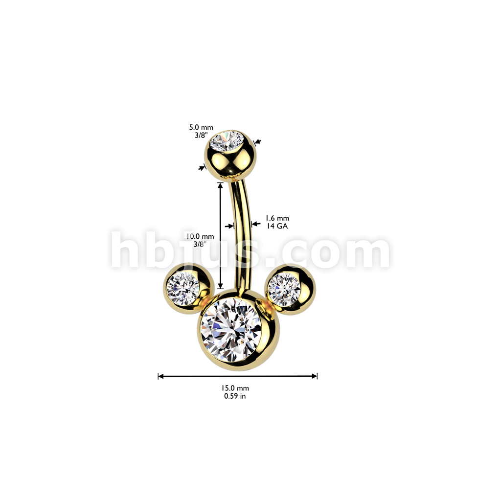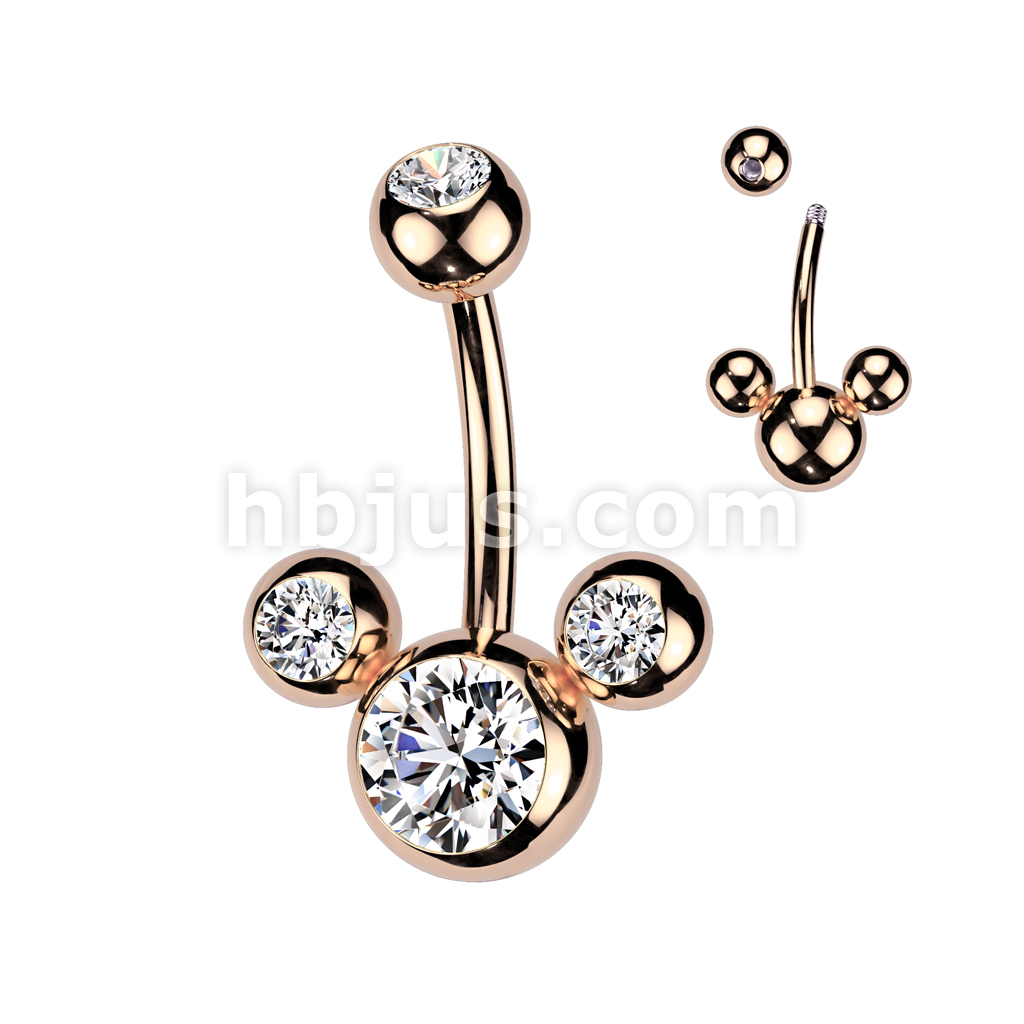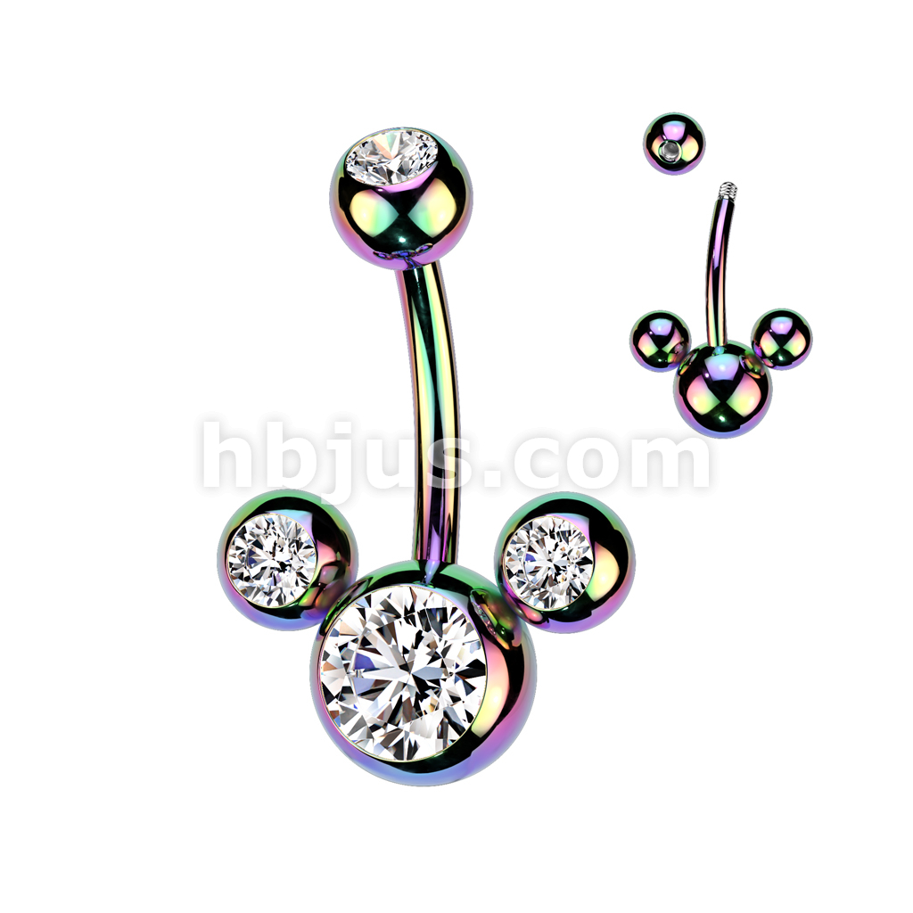 Triple Bubble Navel Ring Ion Plated Over 316L Surgical Steel