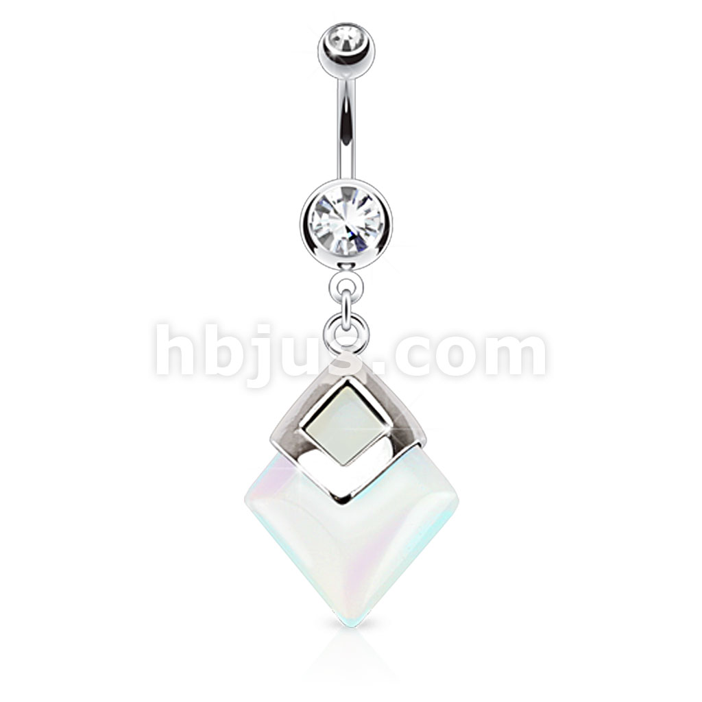316L Surgical Steel Opalite Diamond Shaped Semi Precious Stone Mounted Belly Button Ring