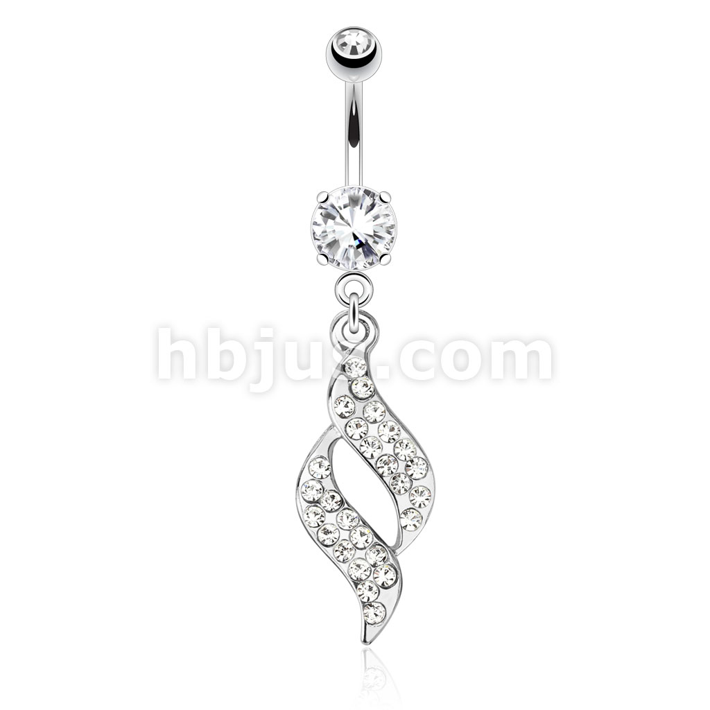 316L Surgical Steel Swirl Design With Paved Gems Dangle Belly Button Ring