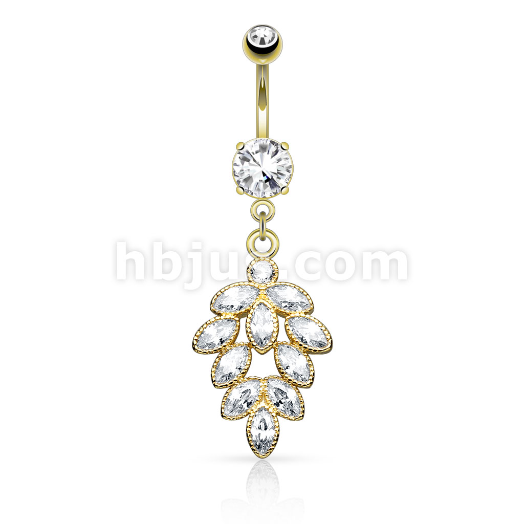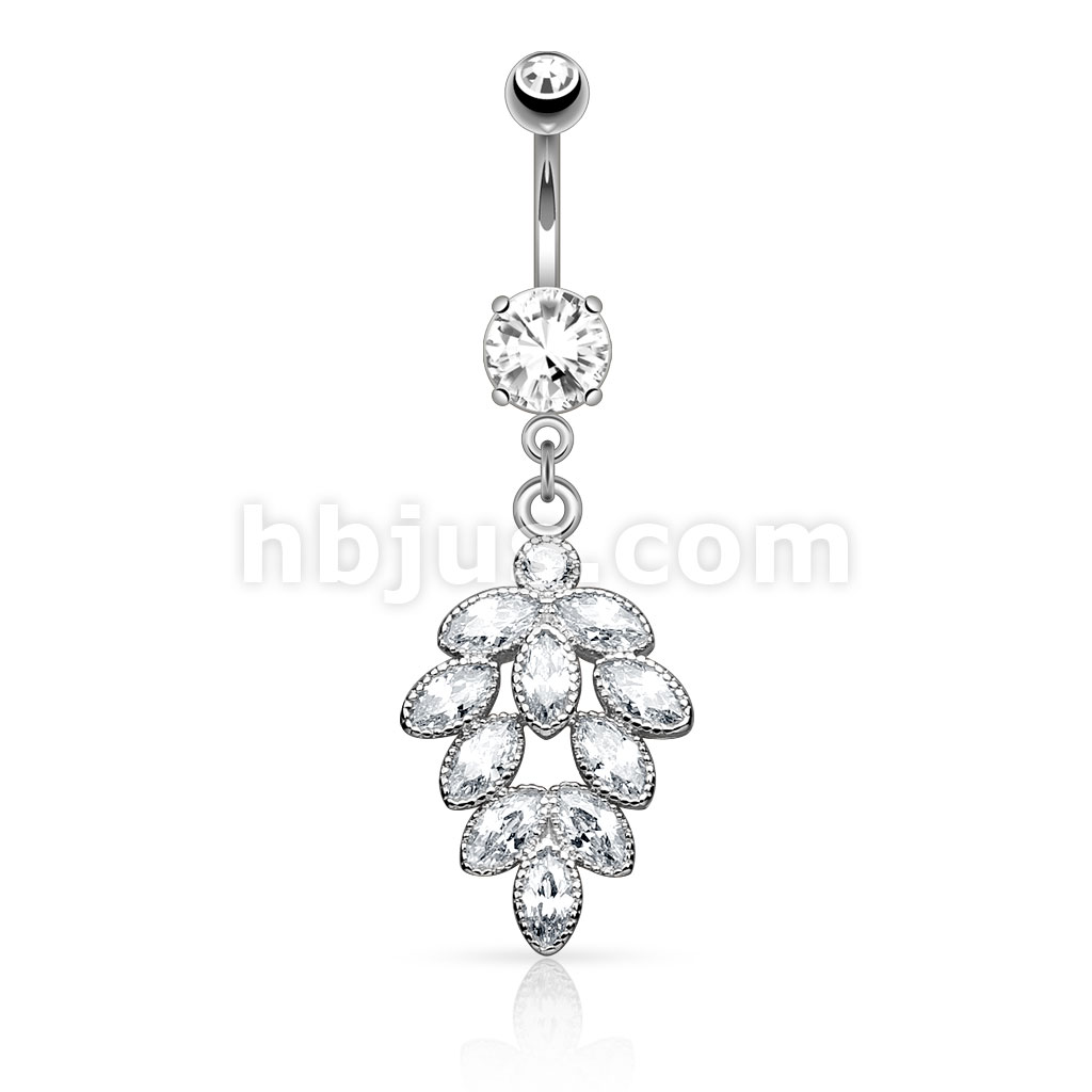 316L Surgical Steel Cluster CZ Grape Dangle Belly Button Ring