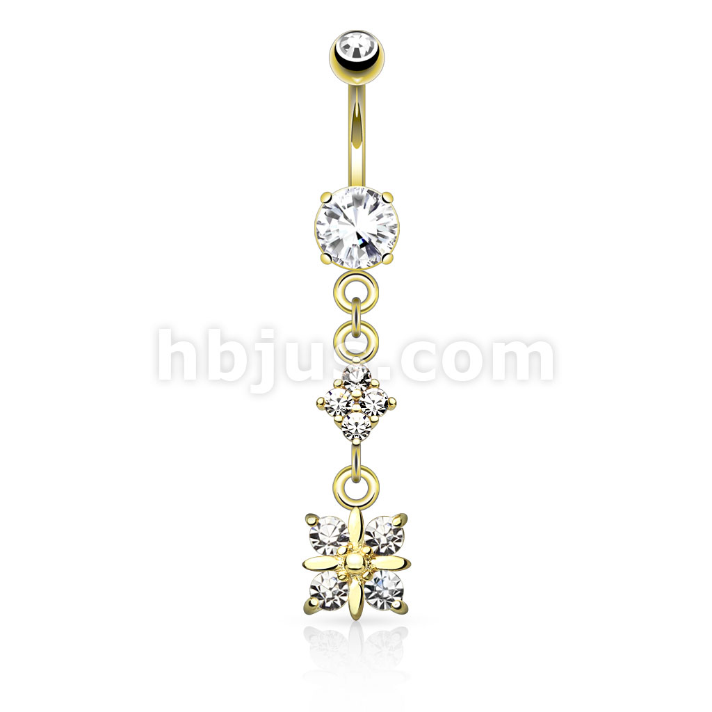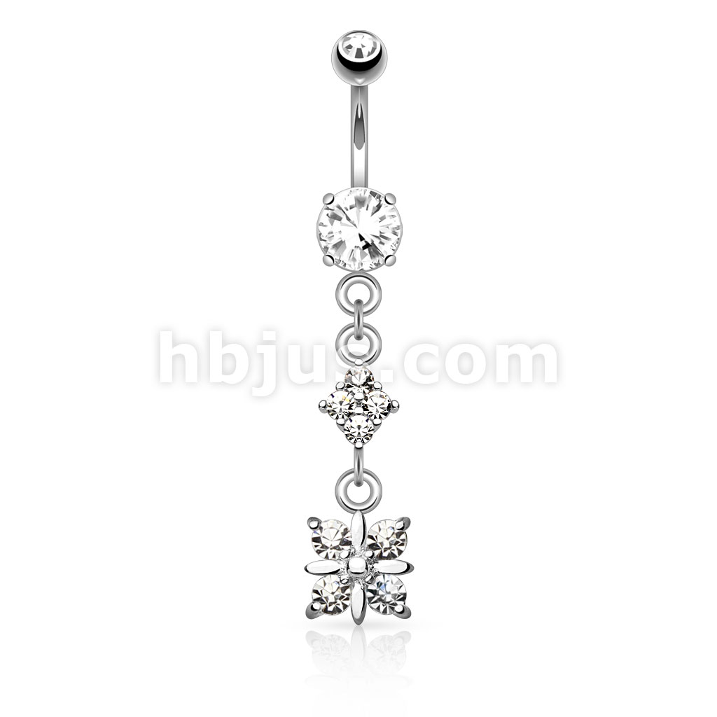 316L Surgical Steel Paved Diamond With 4 Quadrant CZ Drop Dangle Belly Button Ring
