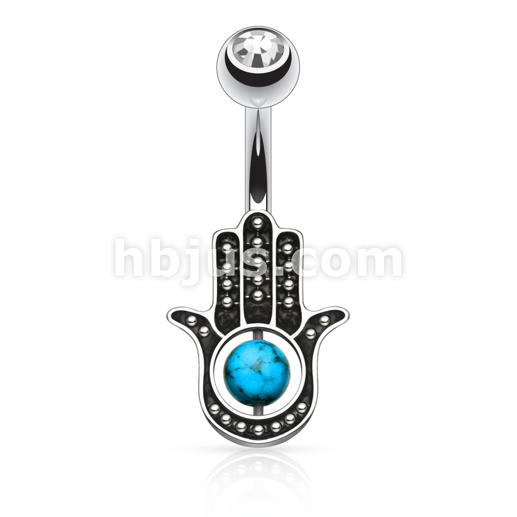 316L Surgical Steel Hamsa Hand With Stone Palm Belly Button Ring