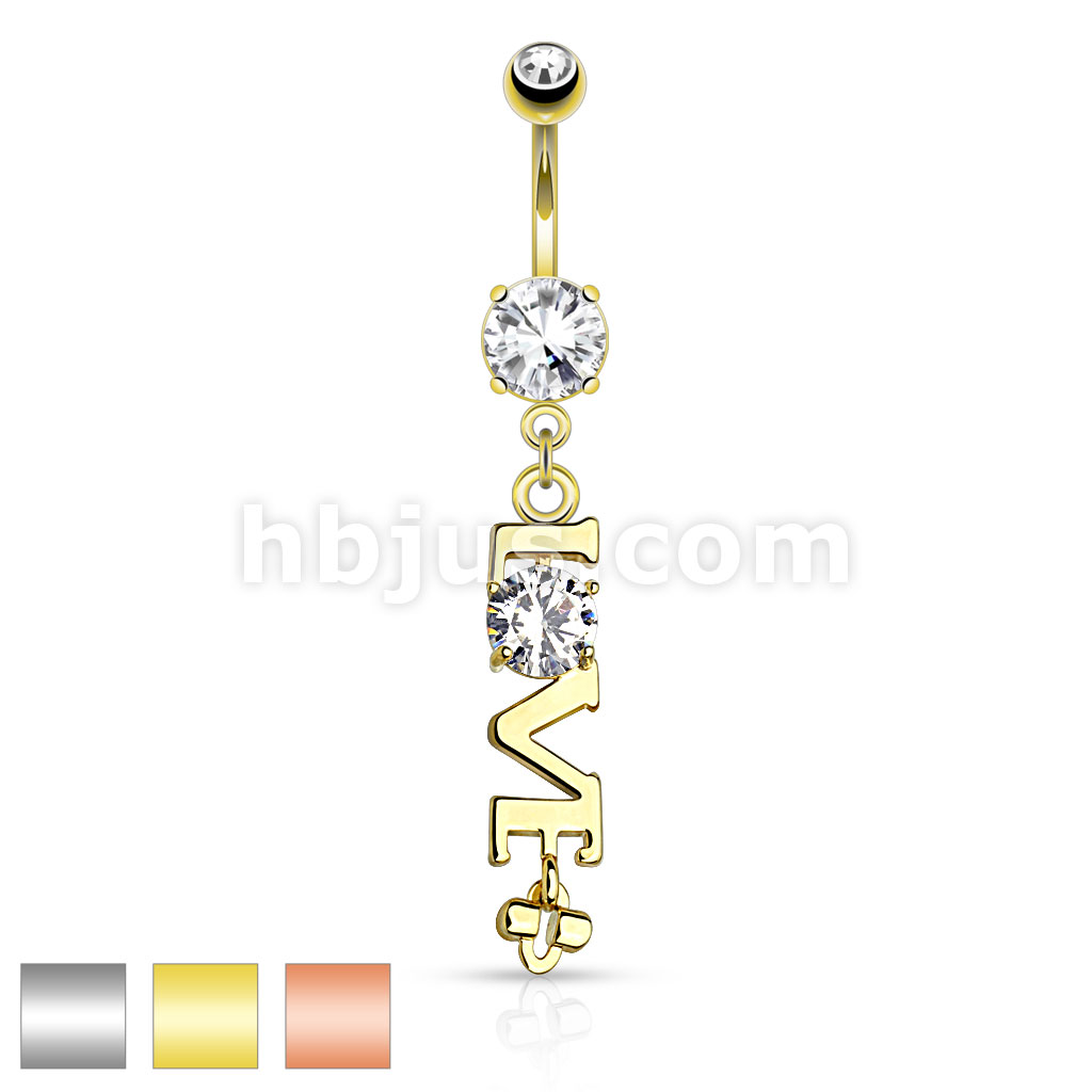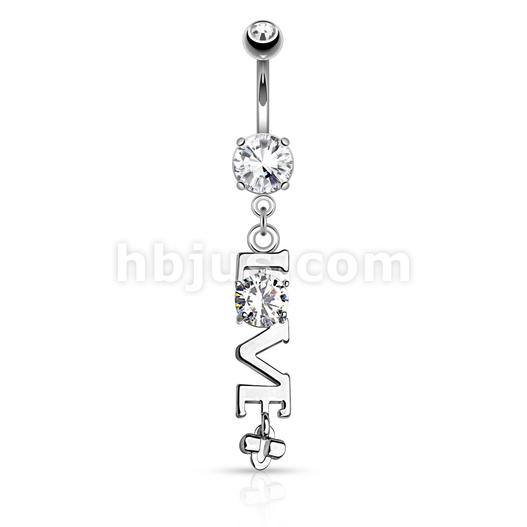 316L Surgical Steel LOVE Clear CZ Dangle Belly Button Ring