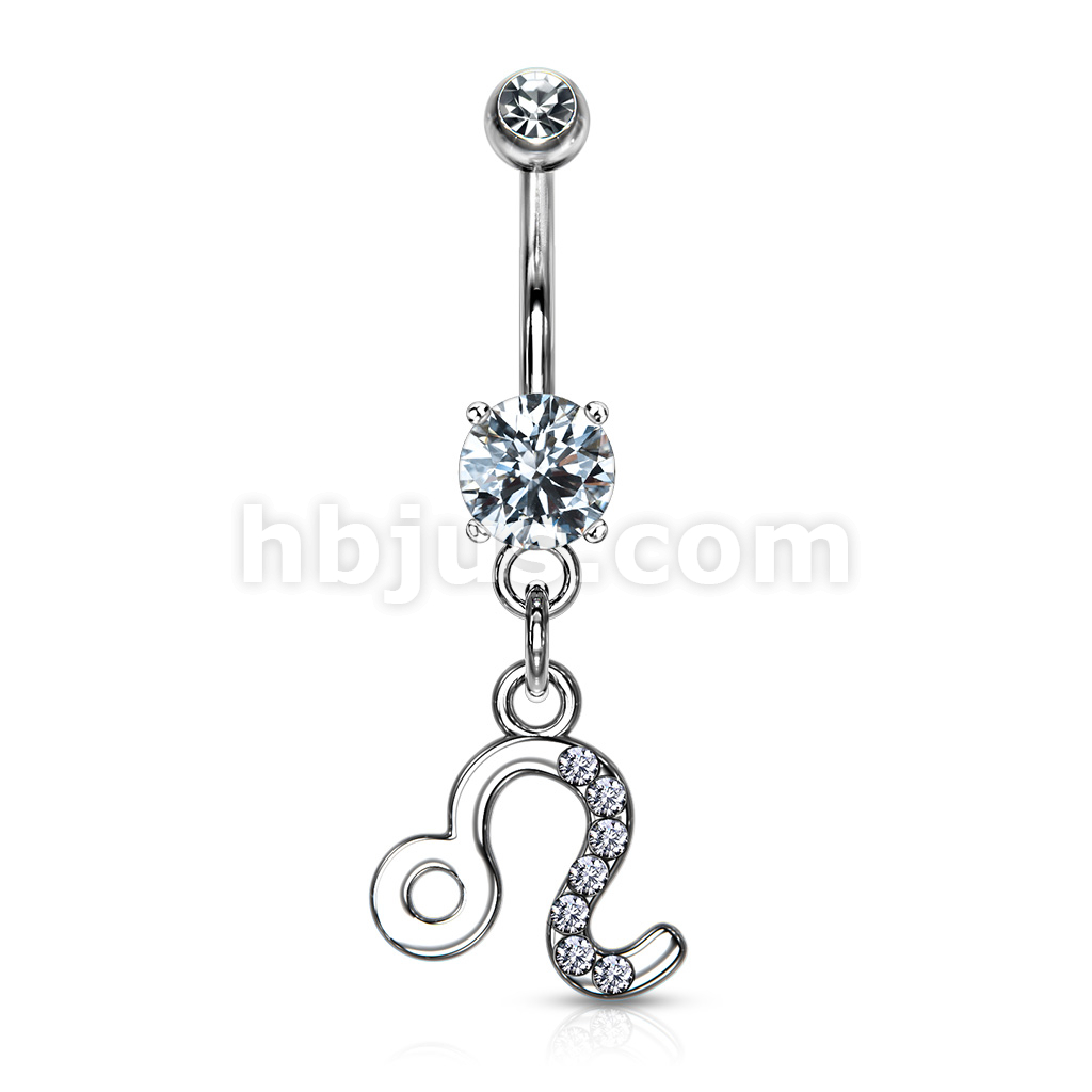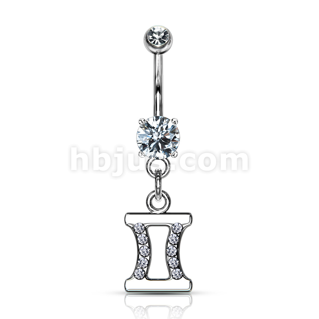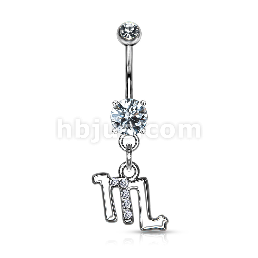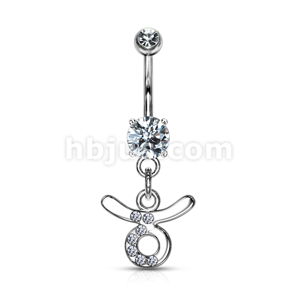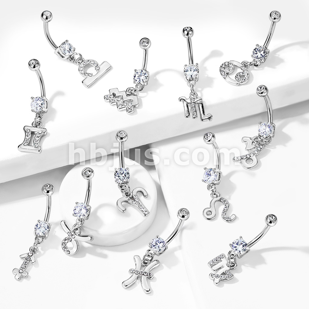 316L Surgical Steel Zodiac Symbol With Clear Gems Dangle Belly Button Ring