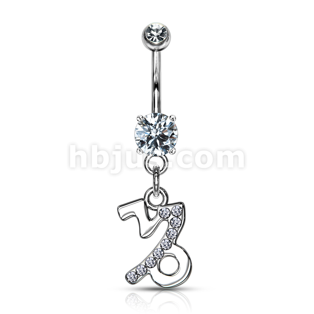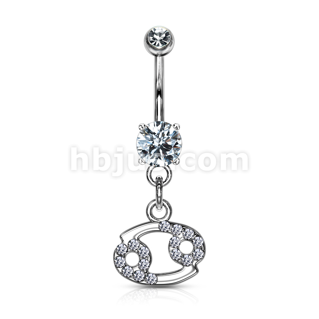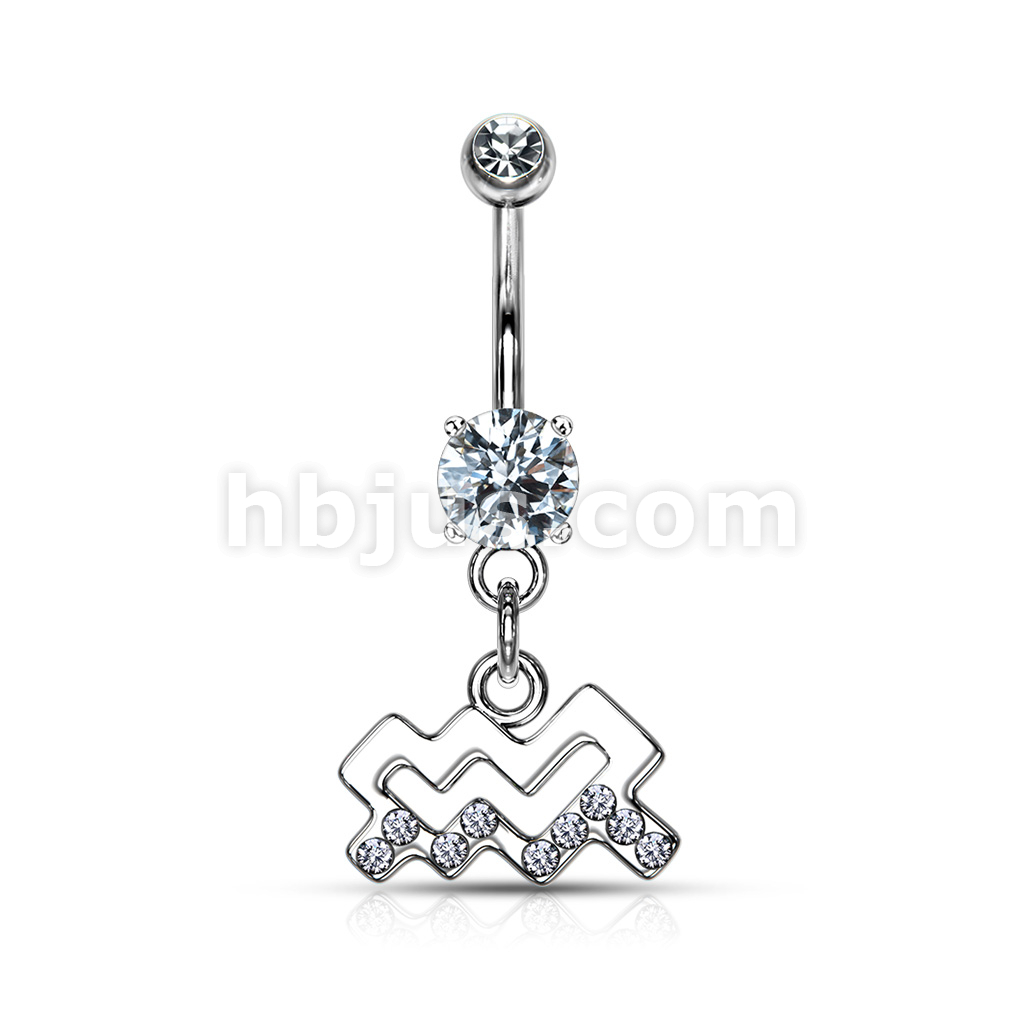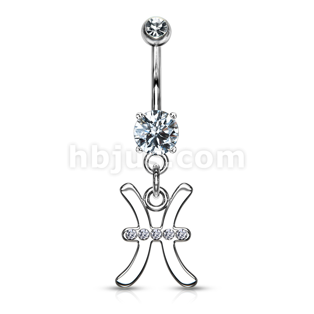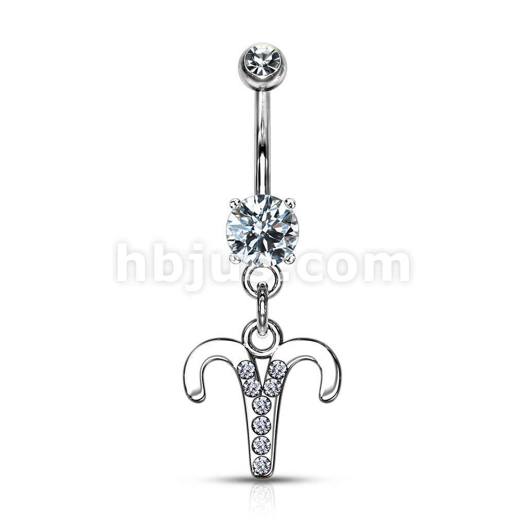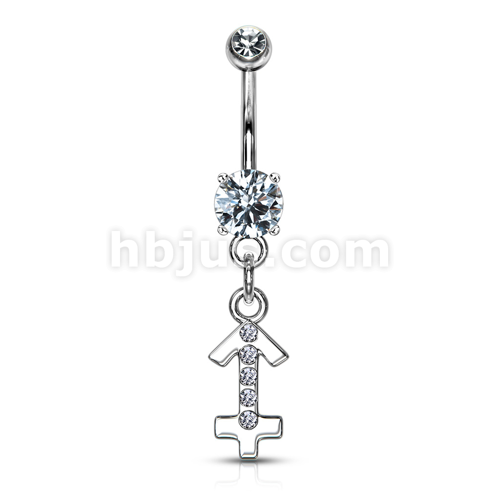 316L Surgical Steel Zodiac Symbol With Clear Gems Dangle Belly Button Ring