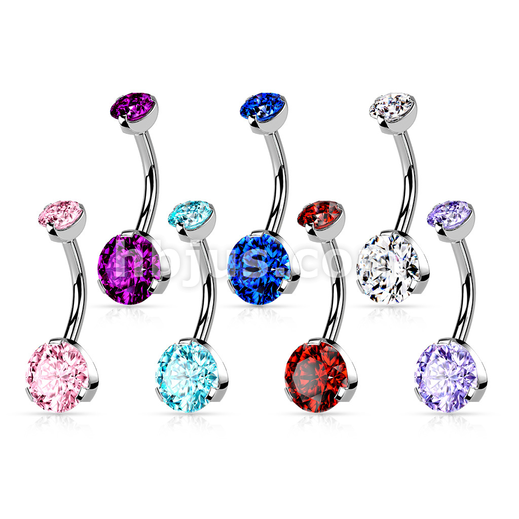 Internally Threaded Prong Set CZ 316L Surgical Steel Banana Navel Ring (10pcs x 7colors)