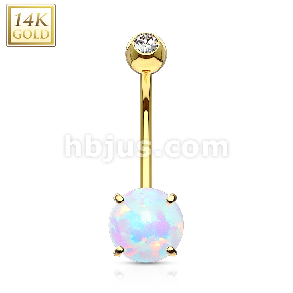 Prong Set 6mm Opal Stone 14K Gold Navel Ring