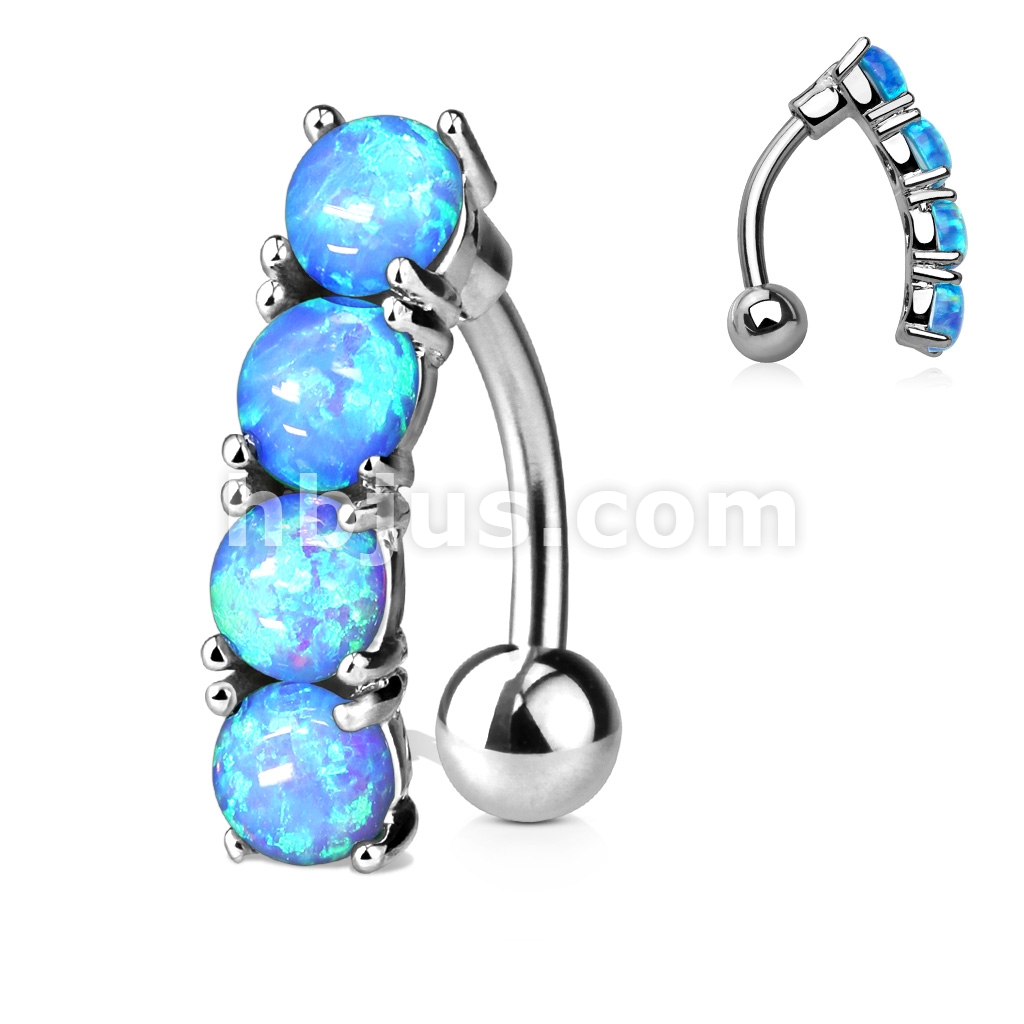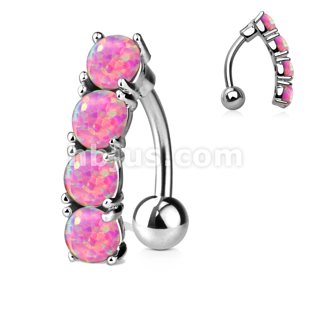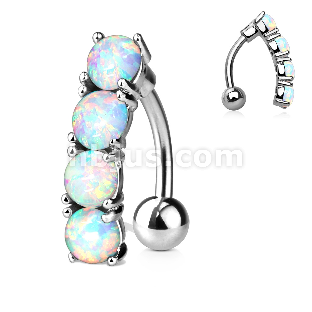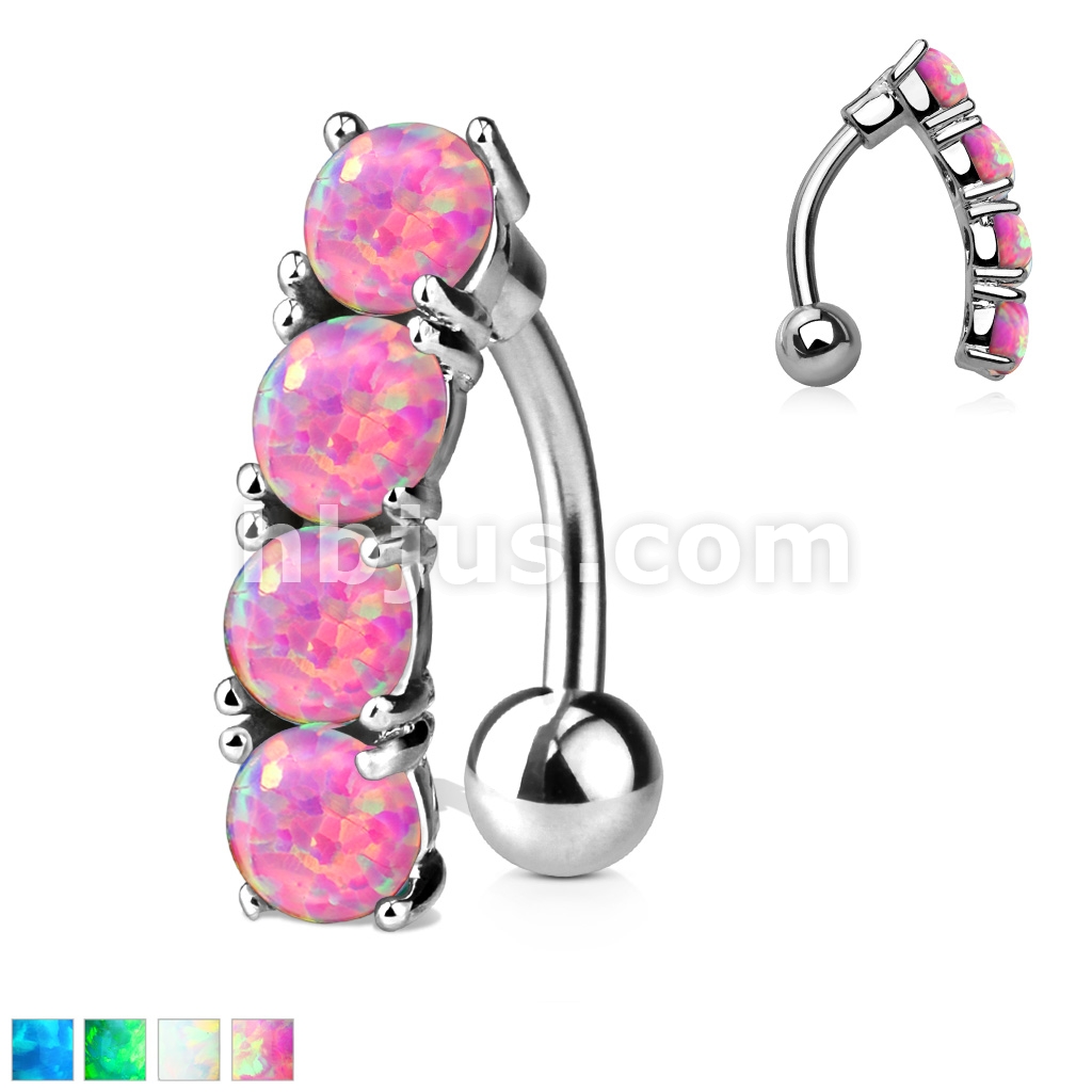 316L Surgical Steel Vertical Drop Top Down Opal Set Belly Button Ring