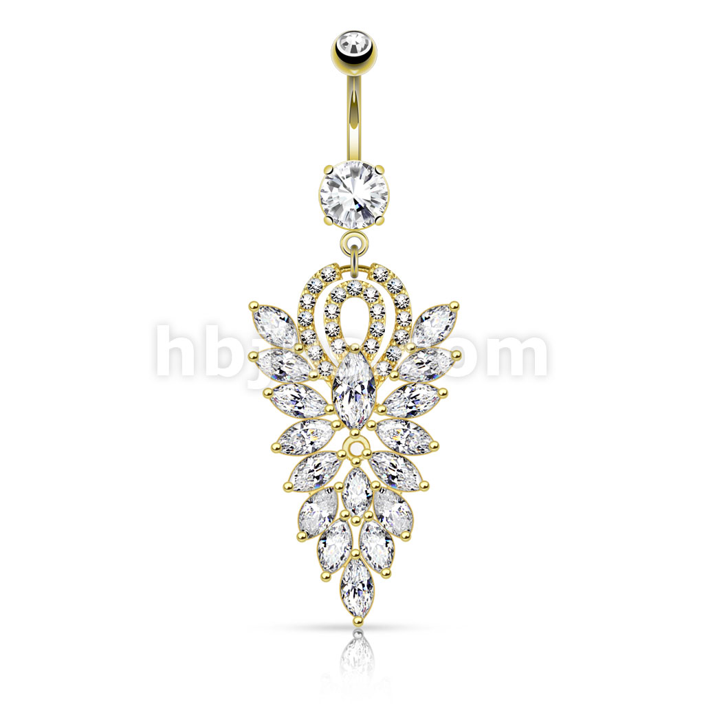 316L Surgical Steel Fancy Chandelier CZ Cluster Dangle Belly Button Ring