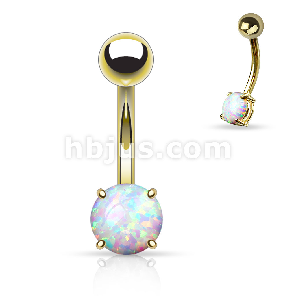 316L Surgical Steel Basic Non Dangle Opal Prong Set Belly Button Ring