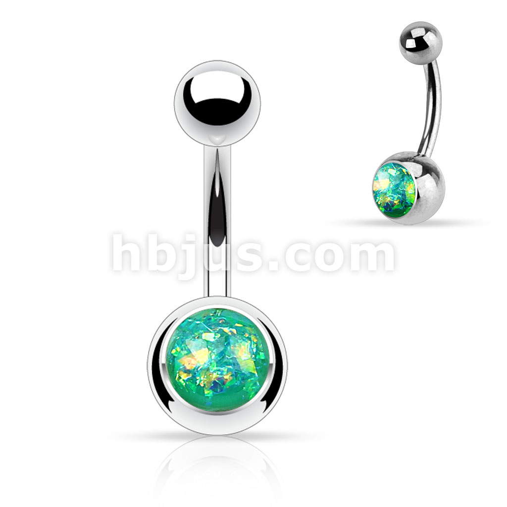 316L Surgical Steel Opal Glitter Set Belly Button Ring