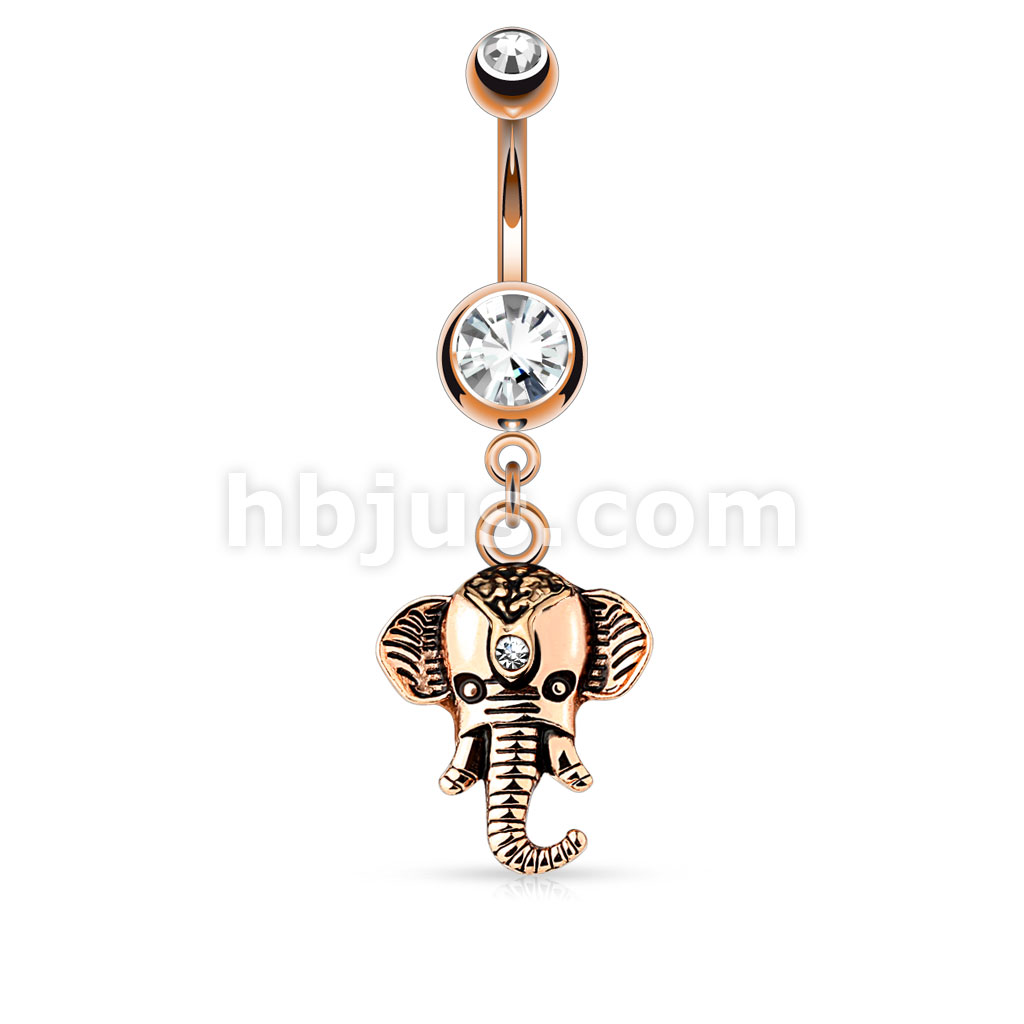 316L Surgical Steel Elephant Dangle Double Jeweled Belly Button Ring