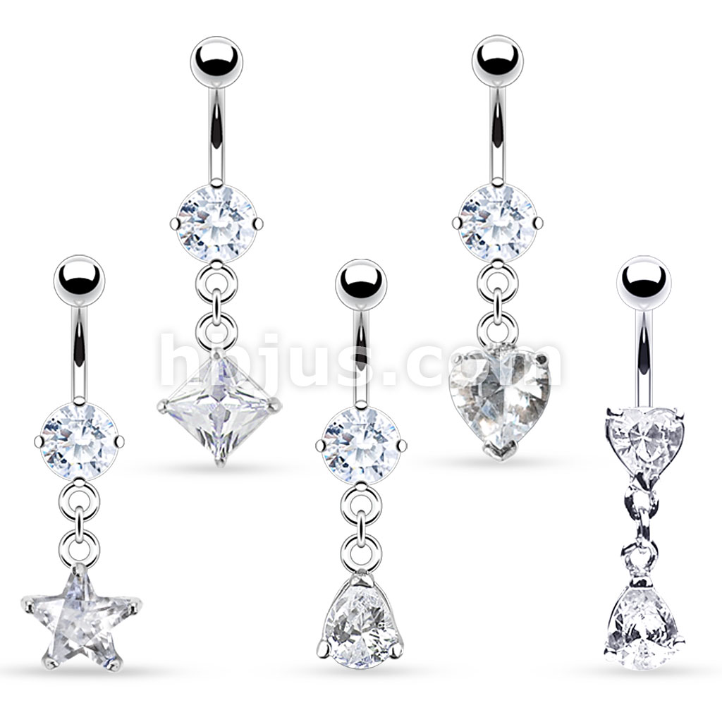 Solitare CZ Dangle Belly Ring Mix 30pc Bulk Pack (6 Pcs x 5 Styles)