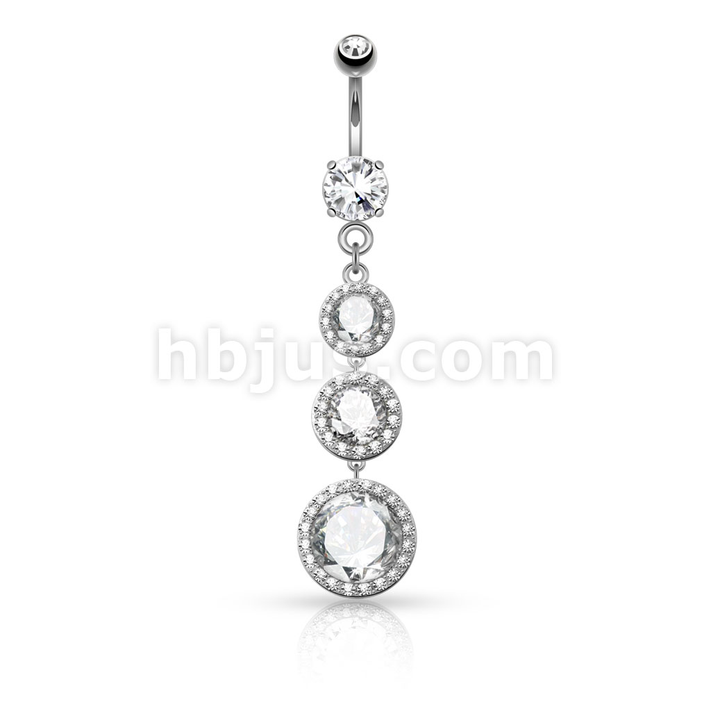 316L Surgical Steel Triple CZ Paved Around Large CZ Drops Belly Button Ring
