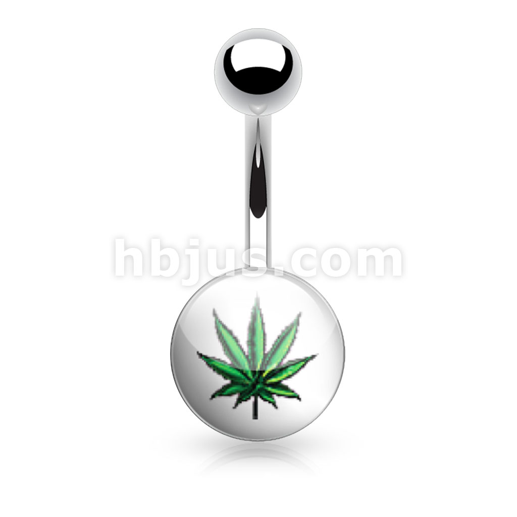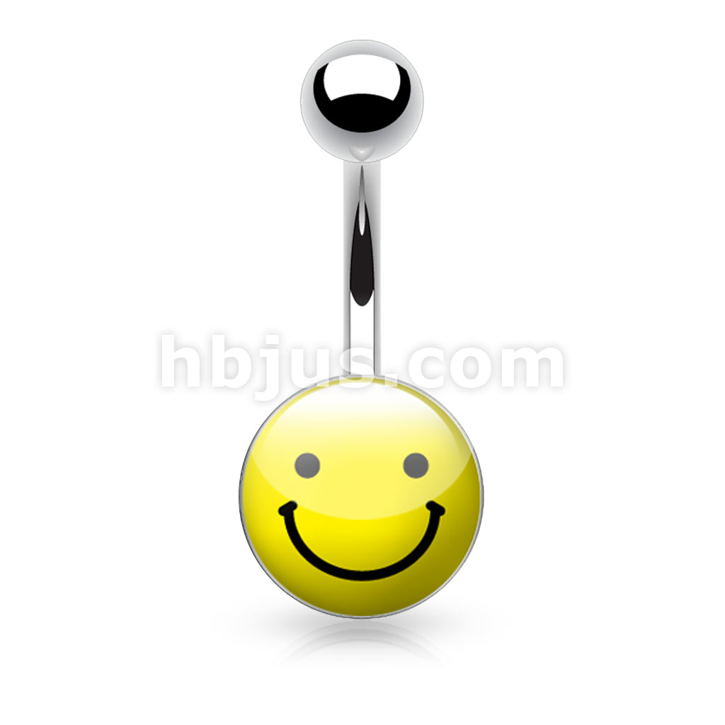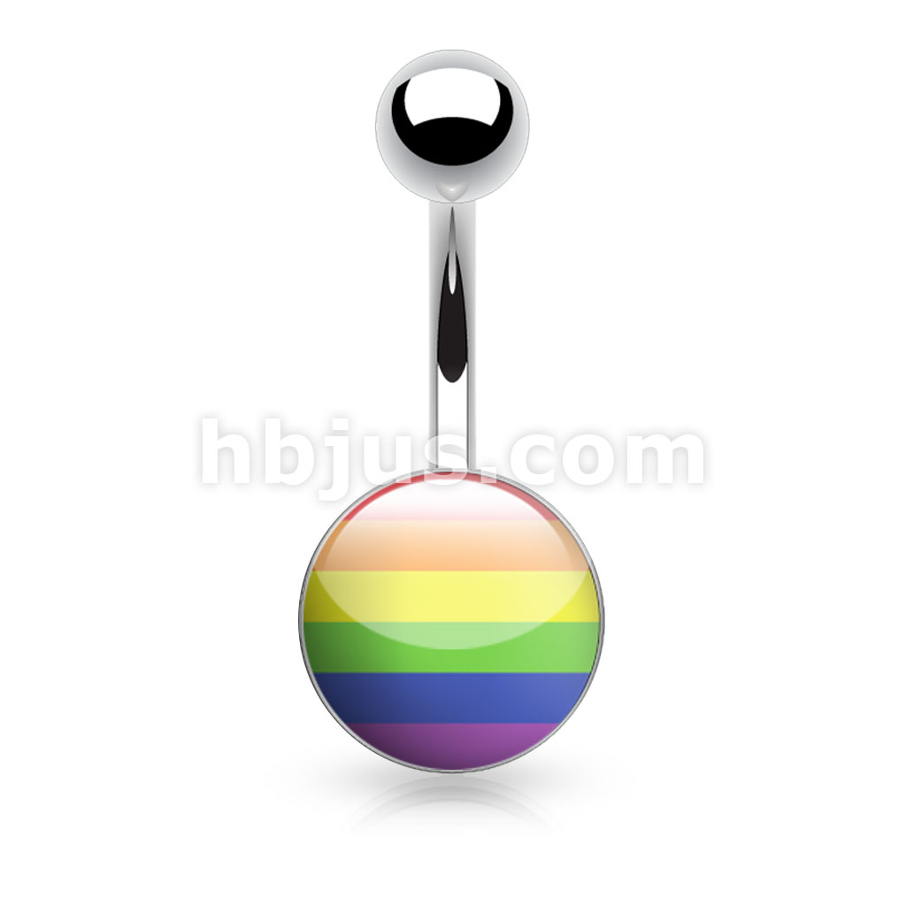 Picture Logo Inlaid and Clear Epoxy Covered 316L Surgical Steel Belly Button Rings