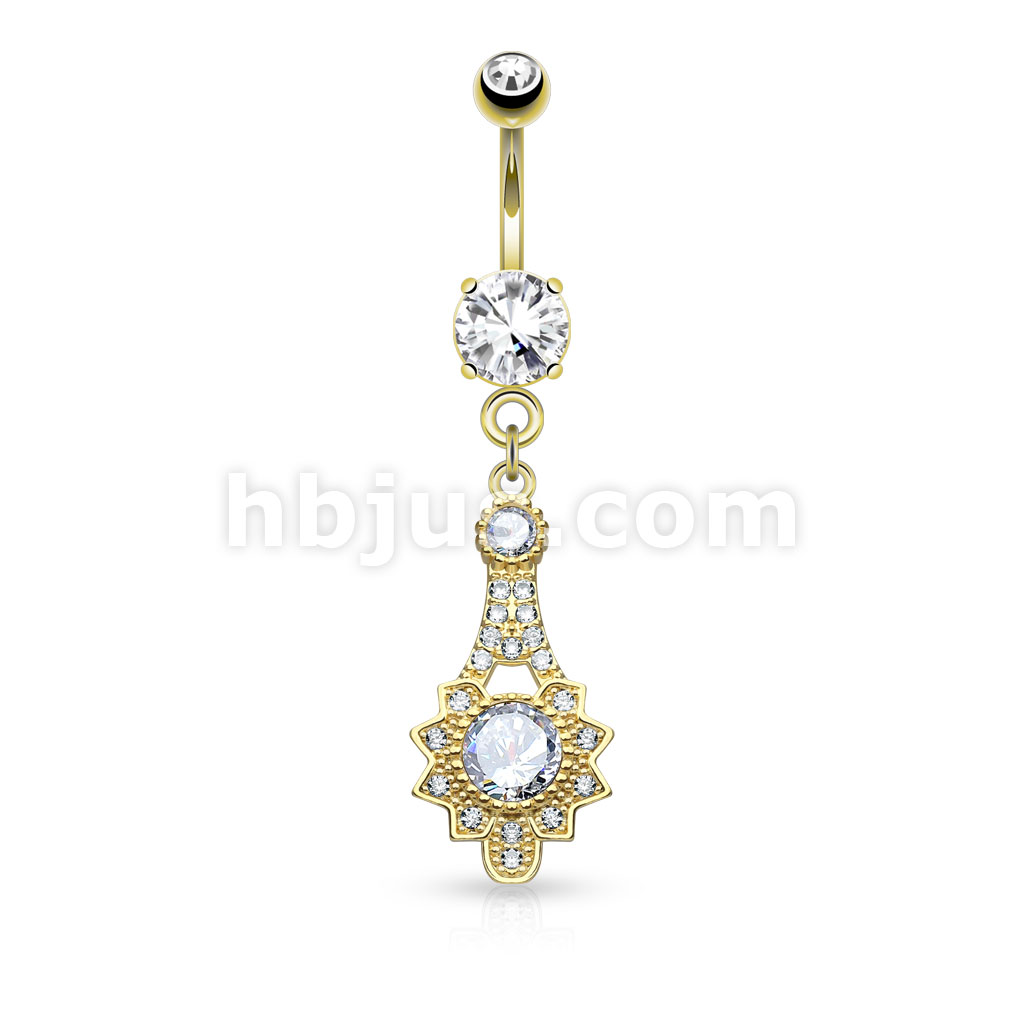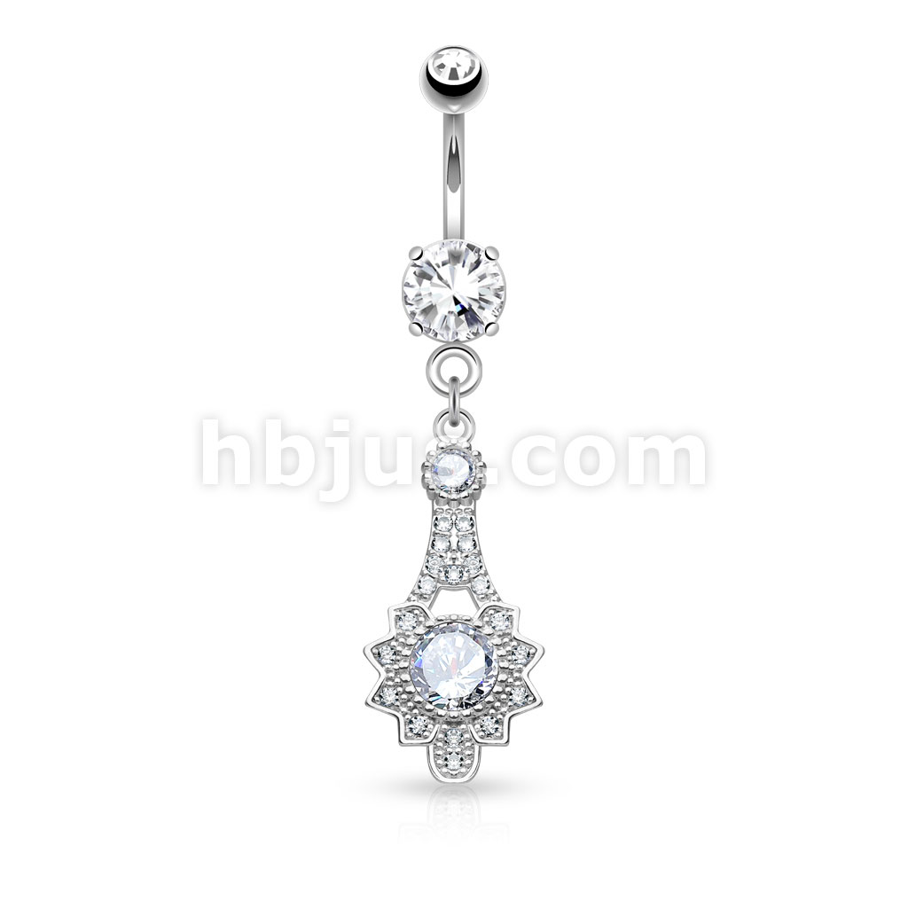 316L Surgical Steel Micro Pave CZ Tribal Sun Dangle Belly Button Rings