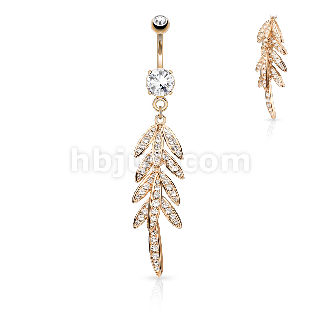 316L Surgical Steel Pave CZ Leaves Dangle Belly Button Ring