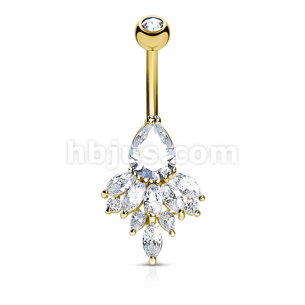 316L Surgical Steel Tear Drop CZ and Marquise CZ Clustered Belly Button Ring