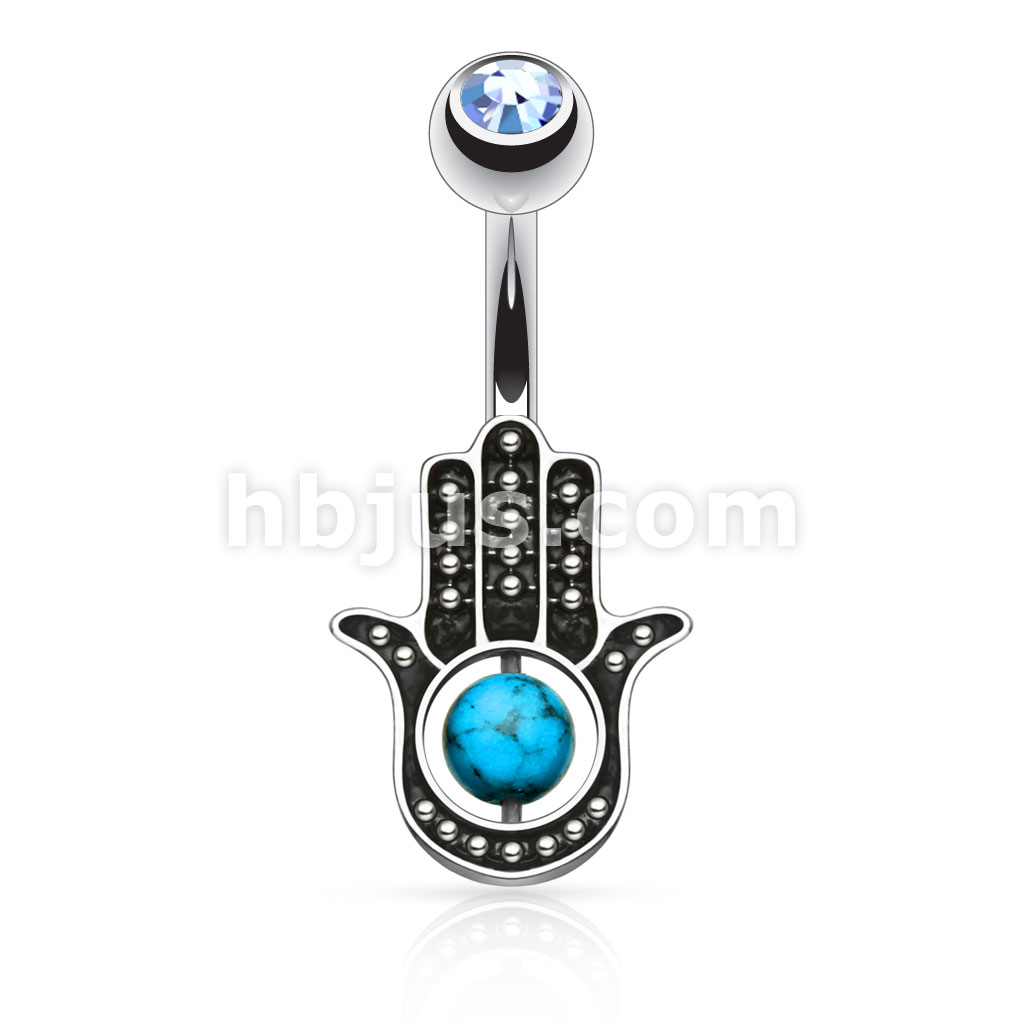 Dozen Pack Hamsa Hand with Turquoise 316L Surgical Steel Navel Ring