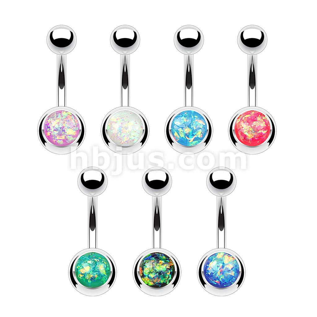 70pcs Opal Glitter Set 316L Surgical Steel Belly Button Navel Ring Bulk Pack (10pcs x 7 Colors)