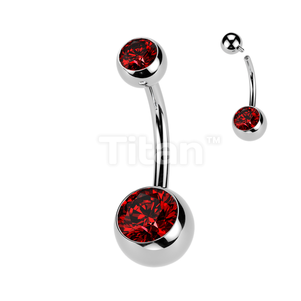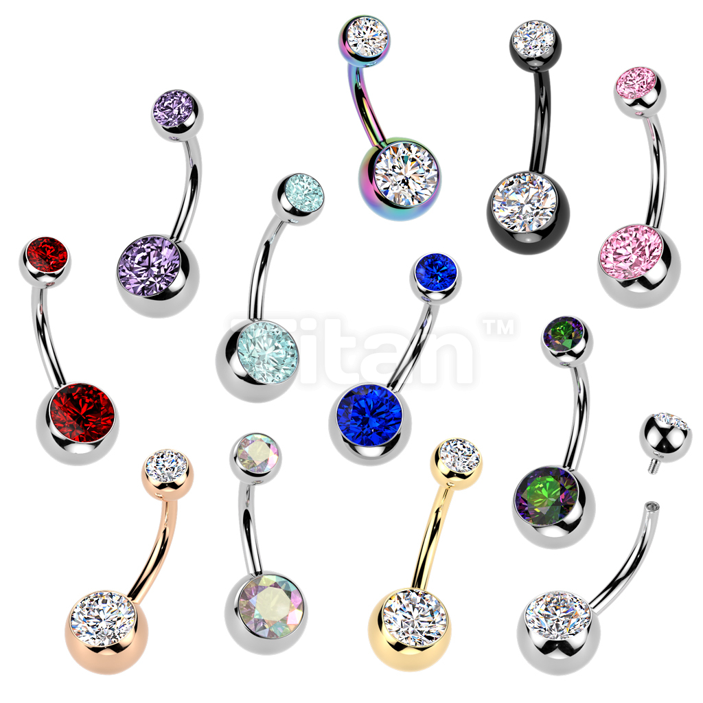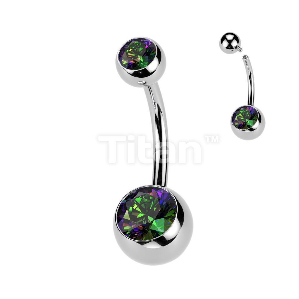 Implant Grade Titanium Internally Threaded Double Jewel Belly Button Ring