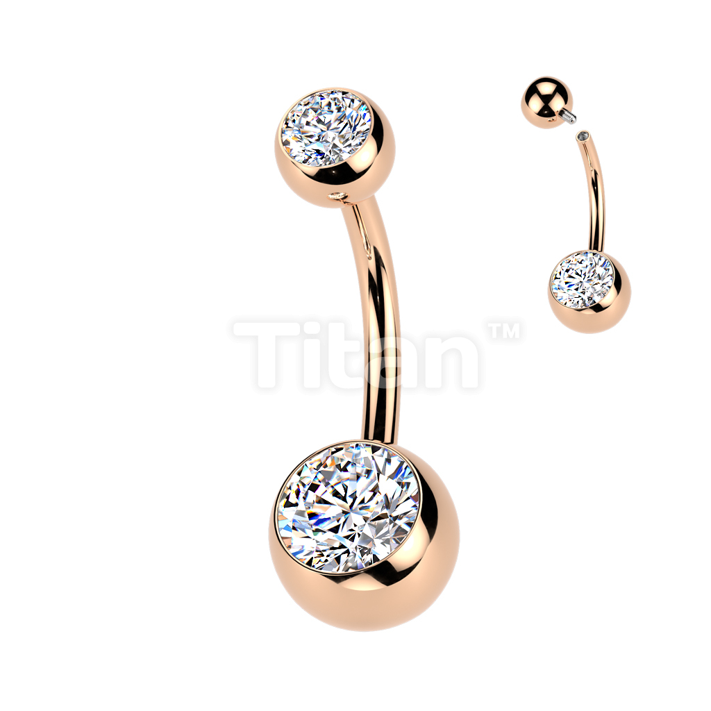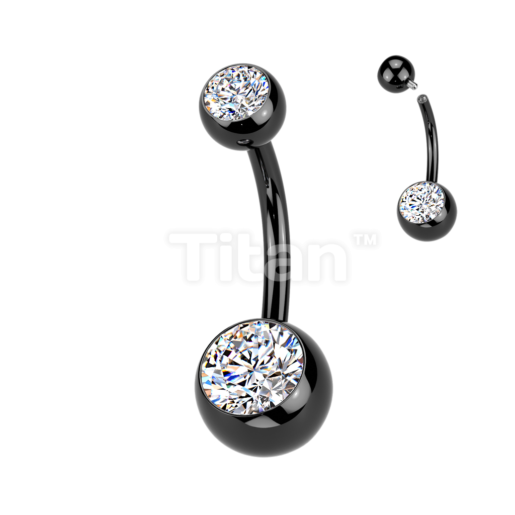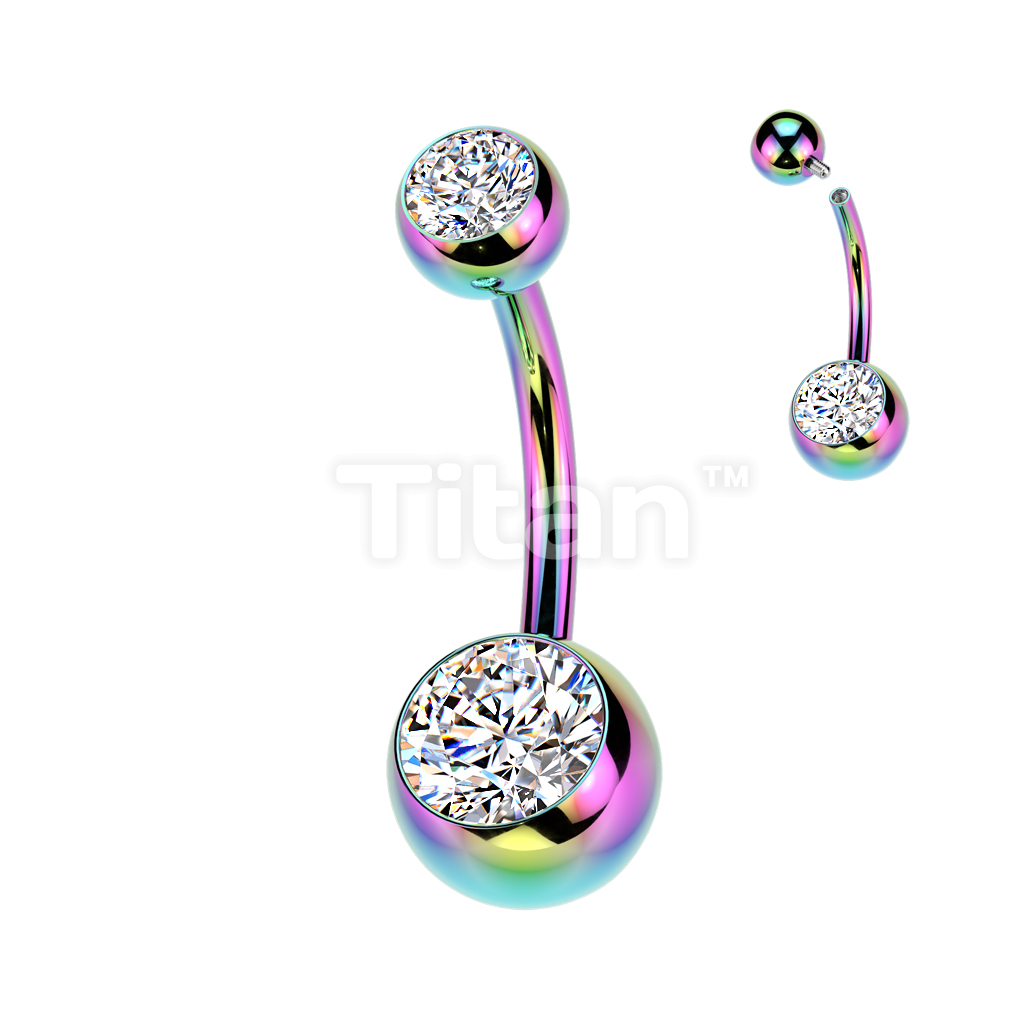 Implant Grade Titanium Internally Threaded Double Jewel Belly Button Ring