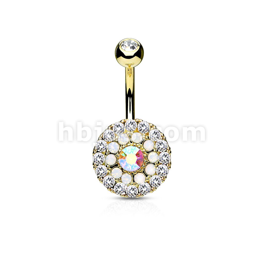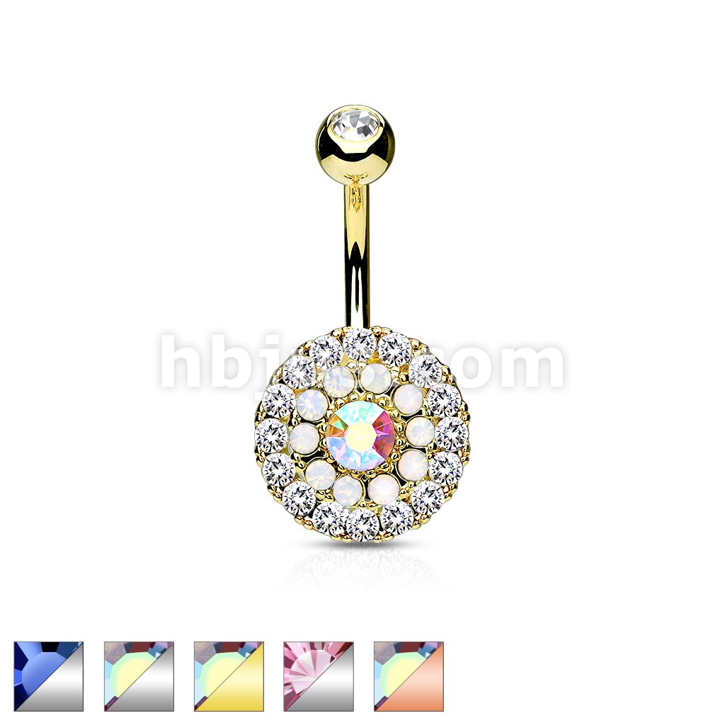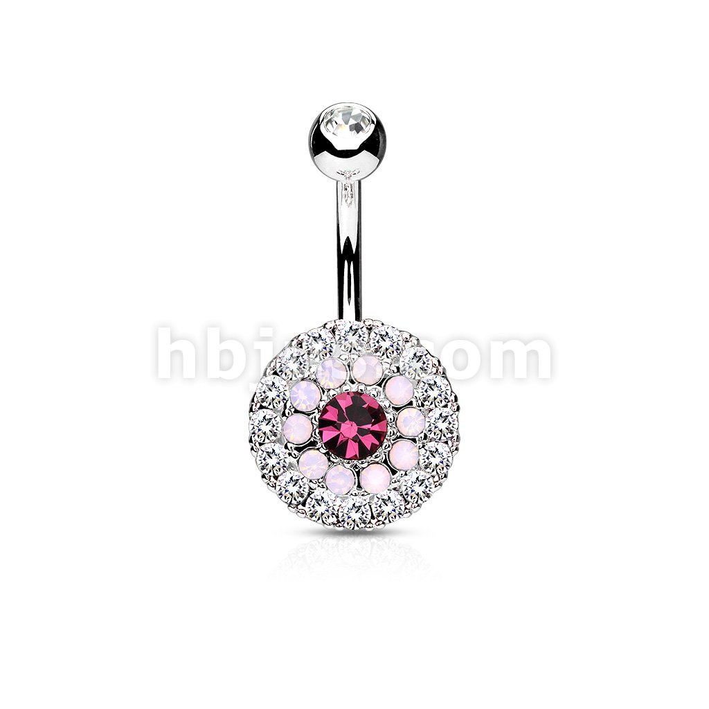 316L Surgical Steel Multi Circle Triple Tiered Crystal and Opalite Belly Button Ring